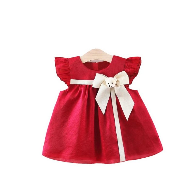 Kids Baby Girls Summer Casual Cute Cartoon Bow Fluttering Sleeve Dress