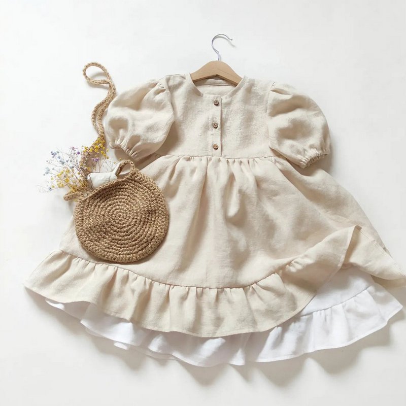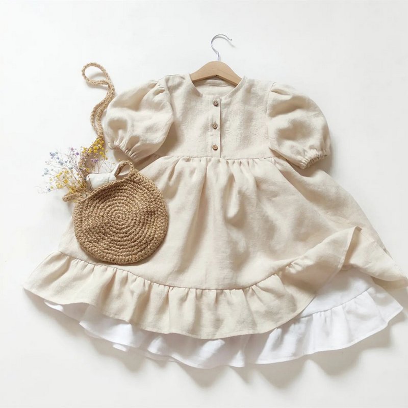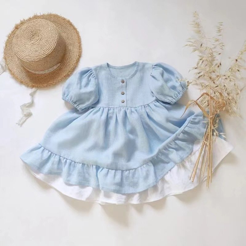 Kids Baby Girls Summer Casual Cute Pastoral Solid Color Short Sleeve Flounced Dress