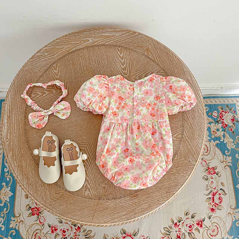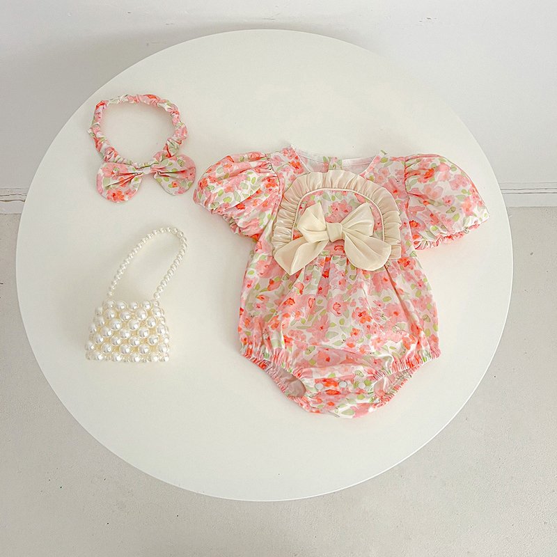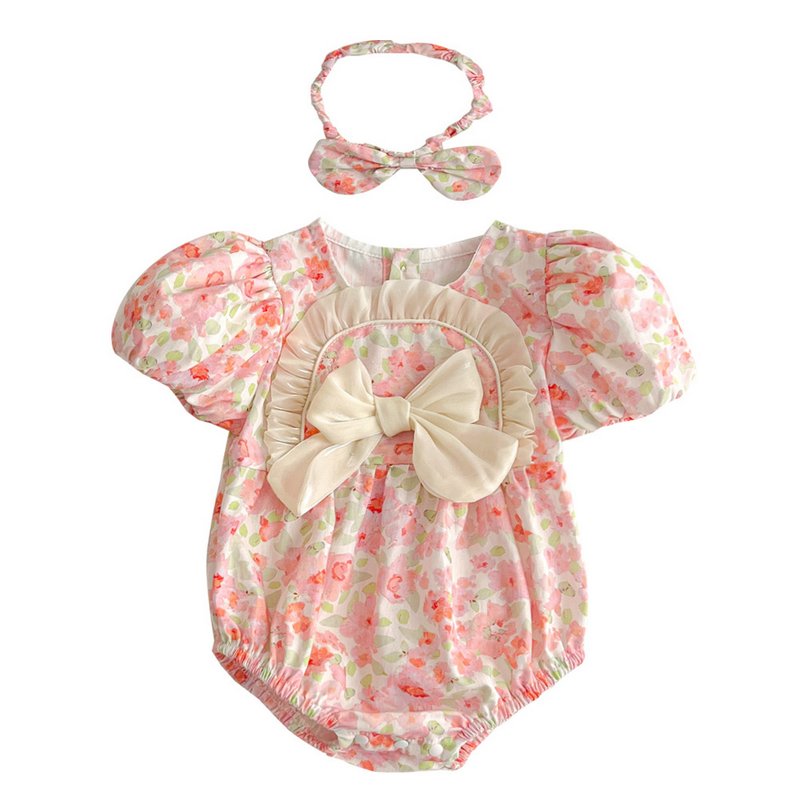Kids Baby Girls Summer Casual Cute Tiny Flower Print Bow Short Sleeve Romper