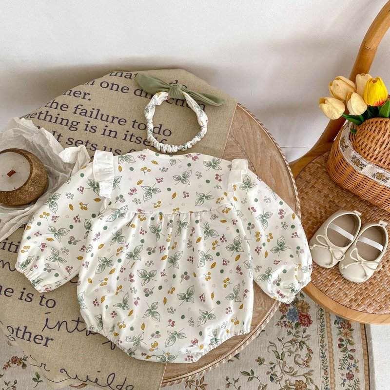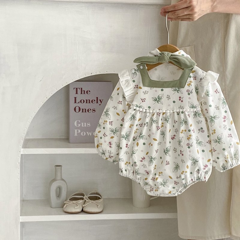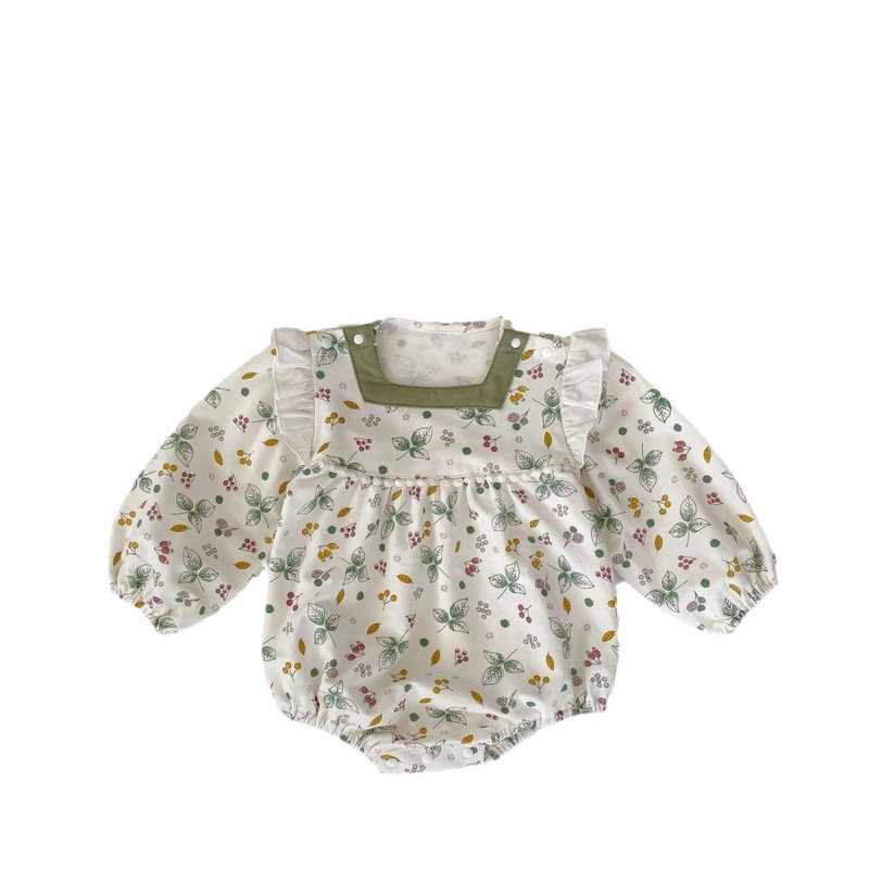 Kids Baby Girls Summer Casual Cute Tute Flower Print Long Sleeve Square Neck Romper