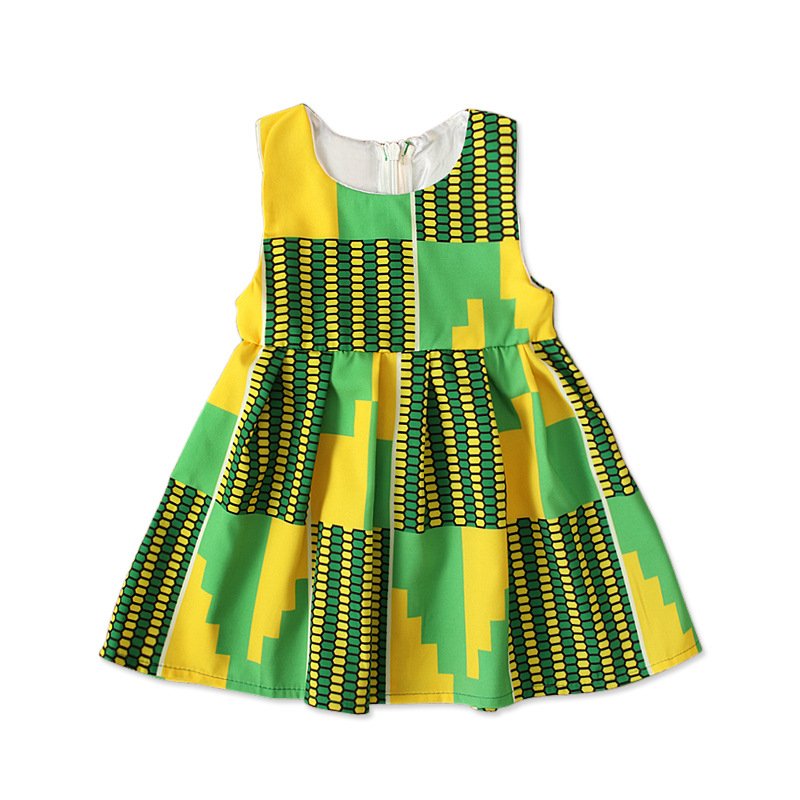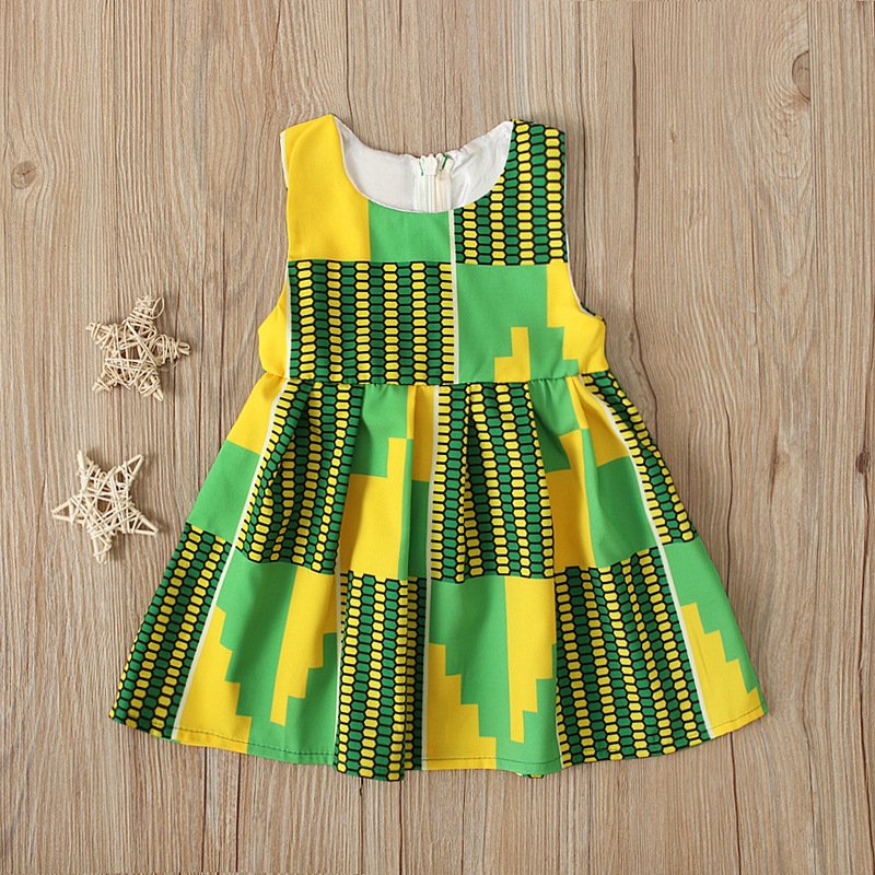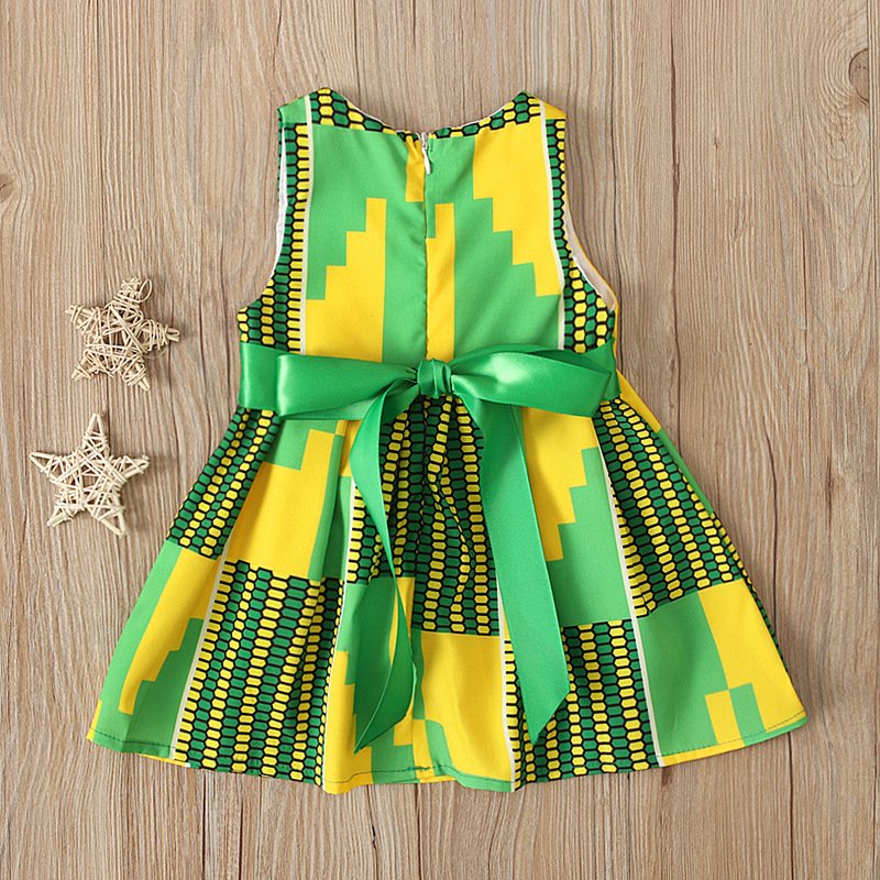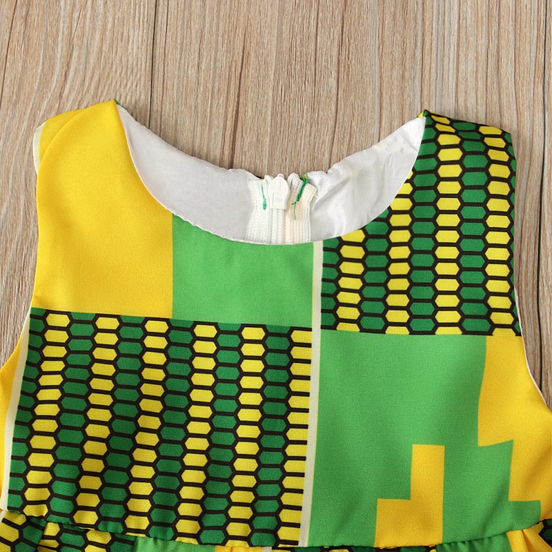Kids Baby Girls Summer Fashion Casual Color Block Geometric Bohemian Vest Dress