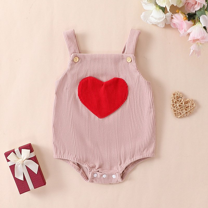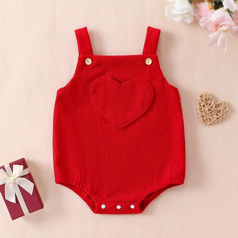 Kids Baby Girls Valentine Casual Cute Sweet Heart Pattern Sleeveless Cami Romper