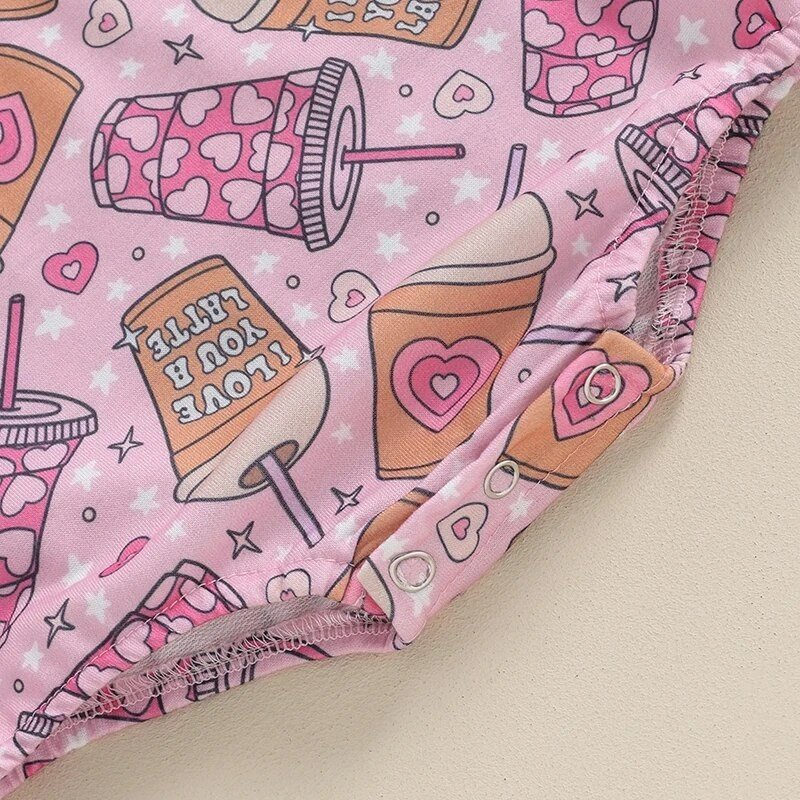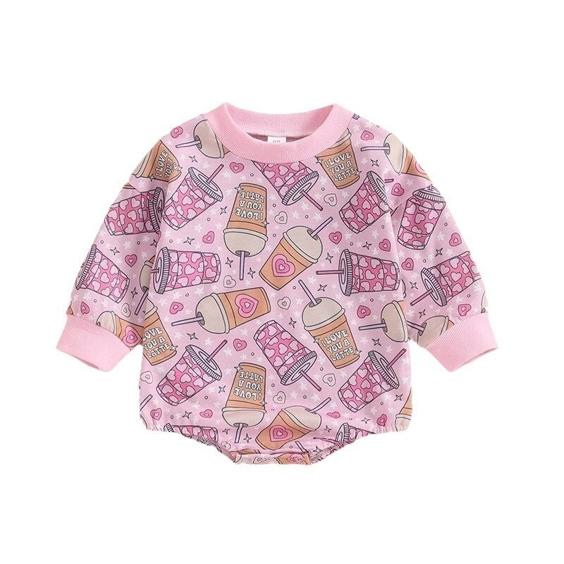 Kids Baby Girls Valentine Casual Love Print Long Sleeve Round Neck Romper