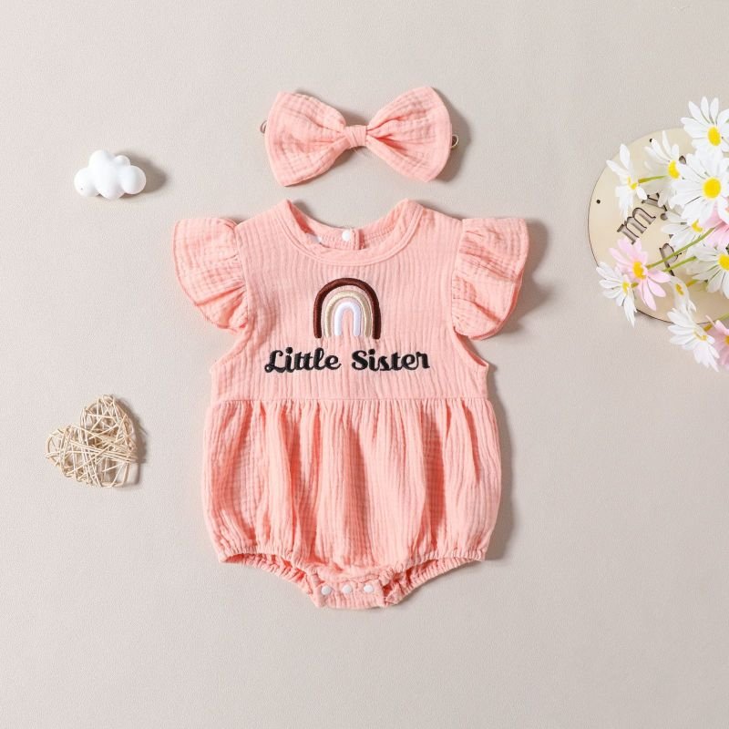 Kids Baby Toddler Girls Summer Casual Cute Rainbow Letter Stripe Print Sleeveless Round Neck Romper Dress Sister Set