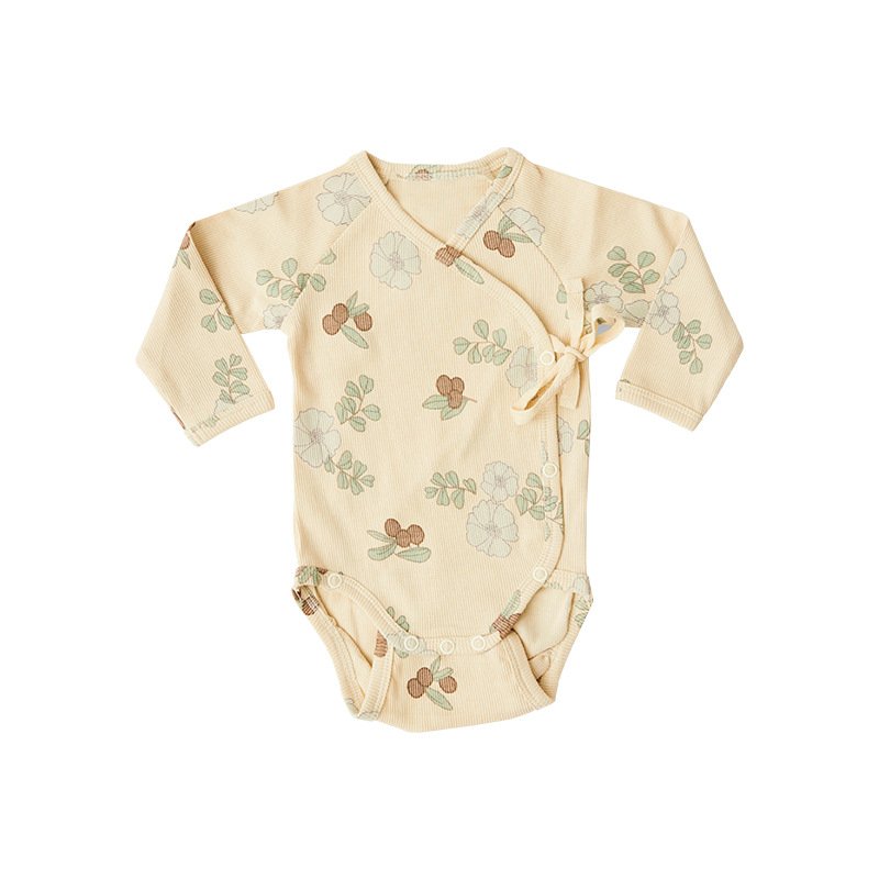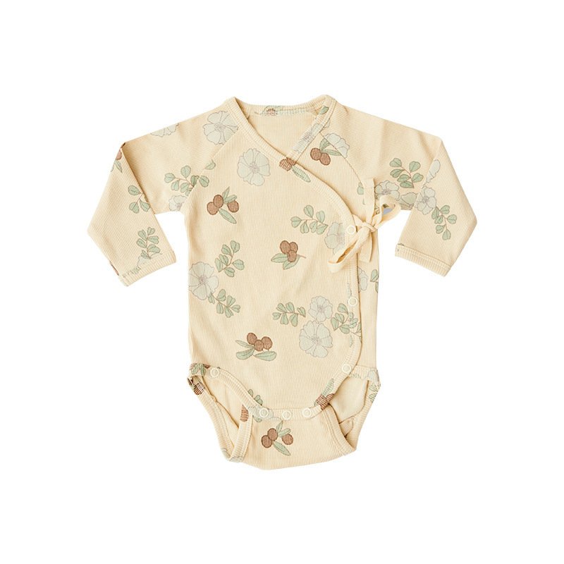 Kids Baby Unisex Spring Autumn Casual Cute Cotton Sea Buckthorn Fruit Flower Pattern Side Opening V Neck Bodysuit