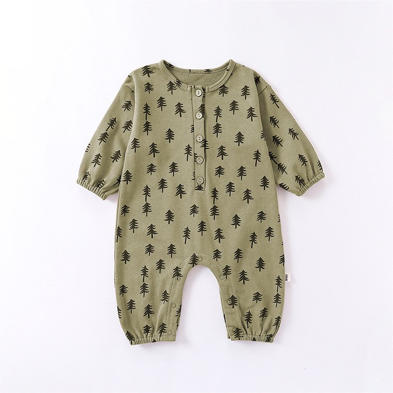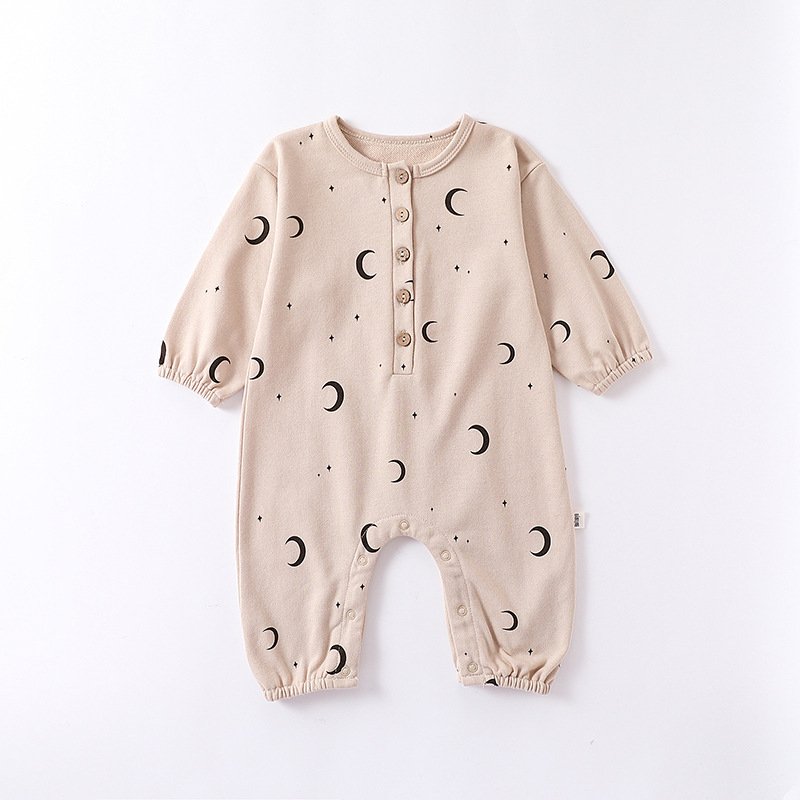 Kids Baby Unisex Spring Autumn Cute Casual Cotton Pine Moon Pattern Button Round Neck Bodysuit