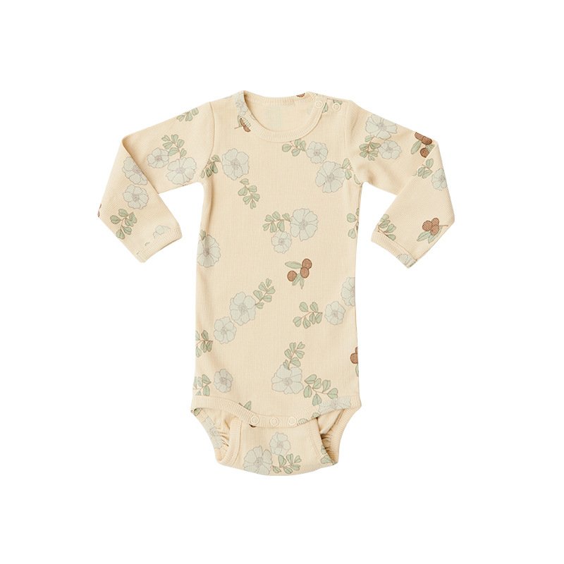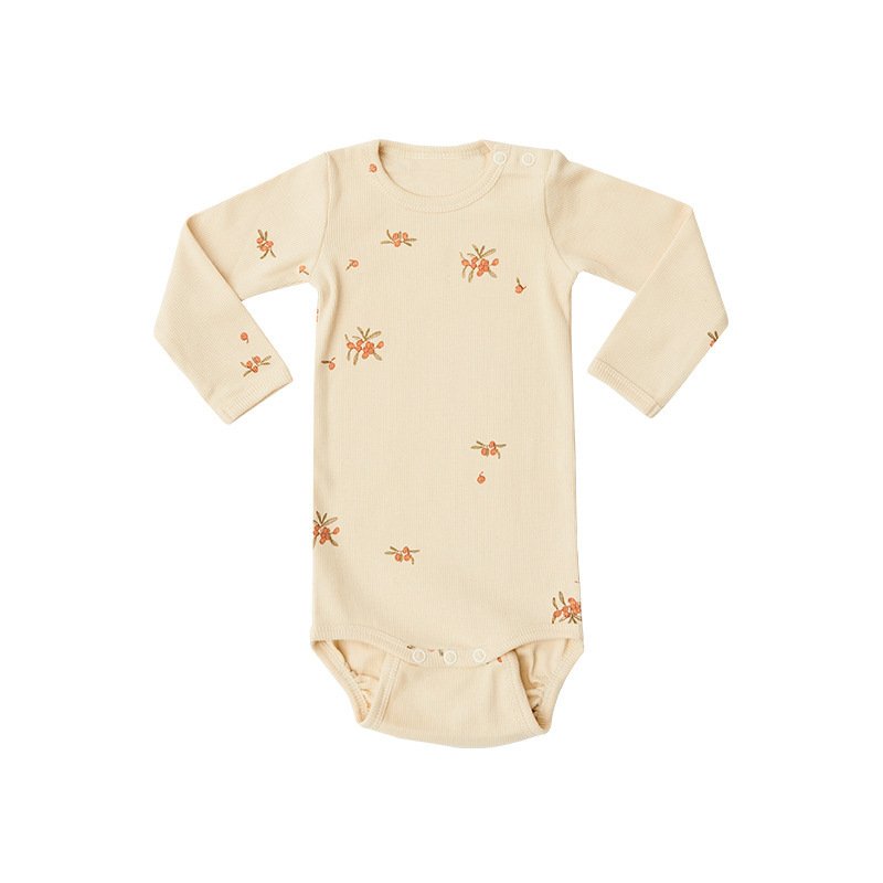 Kids Baby Unisex Spring Autumn Cute Casual Cotton Seabuckthorn Fruit Flower Pattern Long Sleeve Trousers Round Neck Romper