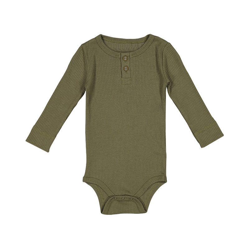 Kids Baby Unisex Spring Autumn Cute Casual Cotton Solid Color Vertical Button Crewneck One-Piece Romper