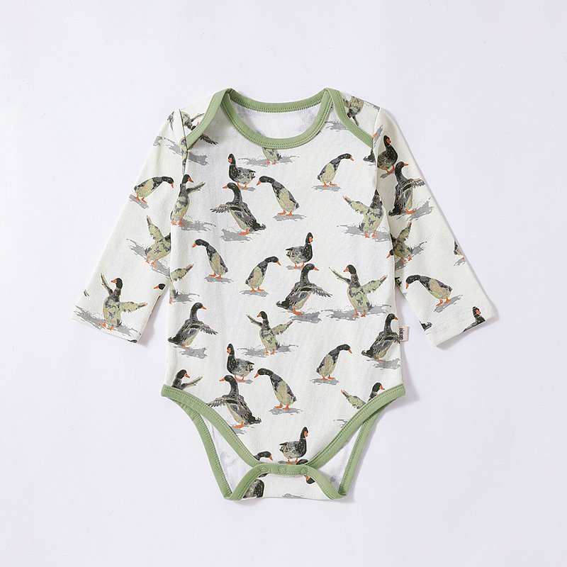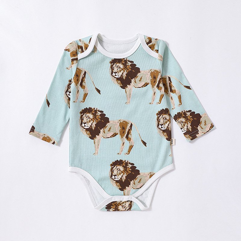 Kids Baby Unisex Spring Autumn Cute Casual Elephant Duck Aoi Lion Tiger Pattern Round Neck Romper