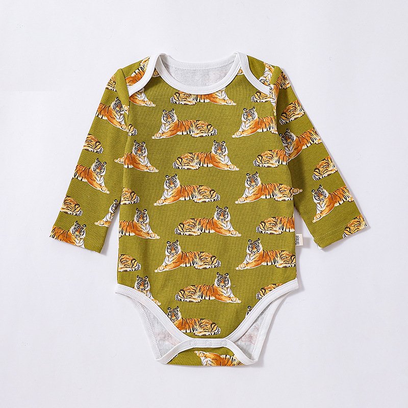 Kids Baby Unisex Spring Autumn Cute Casual Elephant Duck Aoi Lion Tiger Pattern Round Neck Romper