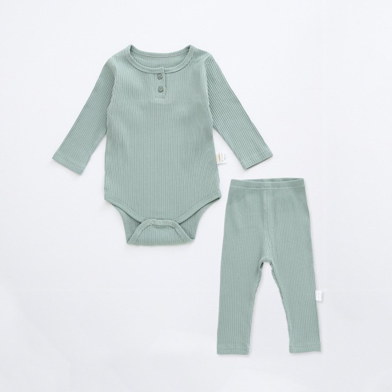 Kids Baby Unisex Spring Autumn Cute Casual Solid Color Striped Button Round Neck Long Sleeve Trousers Set