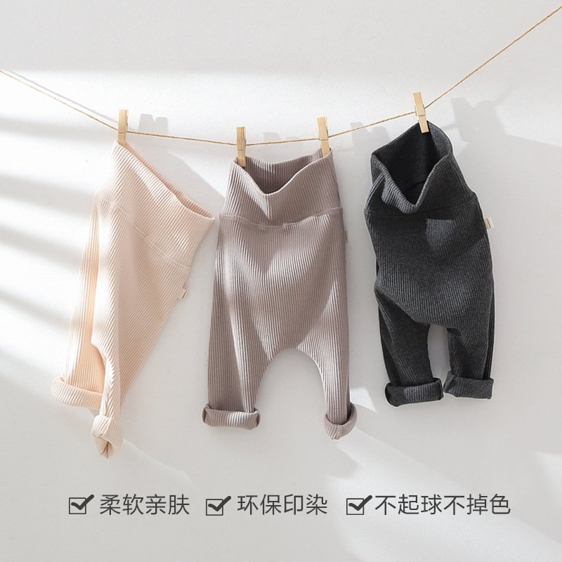 Kids Baby Unisex Spring Autumn Cute Casual Solid Color Striped High Waist Trousers