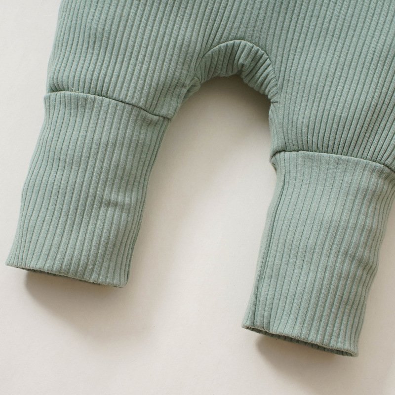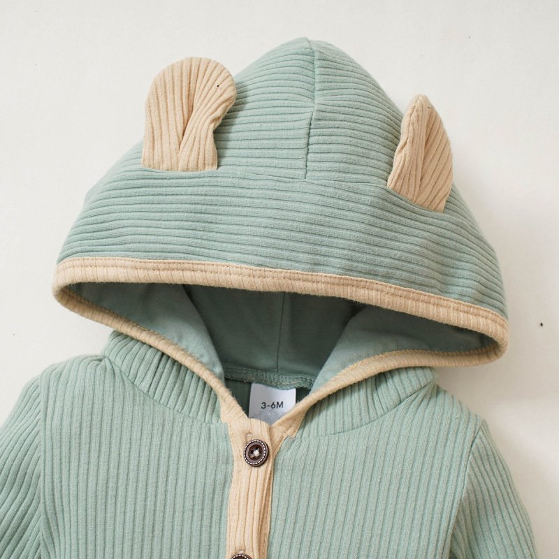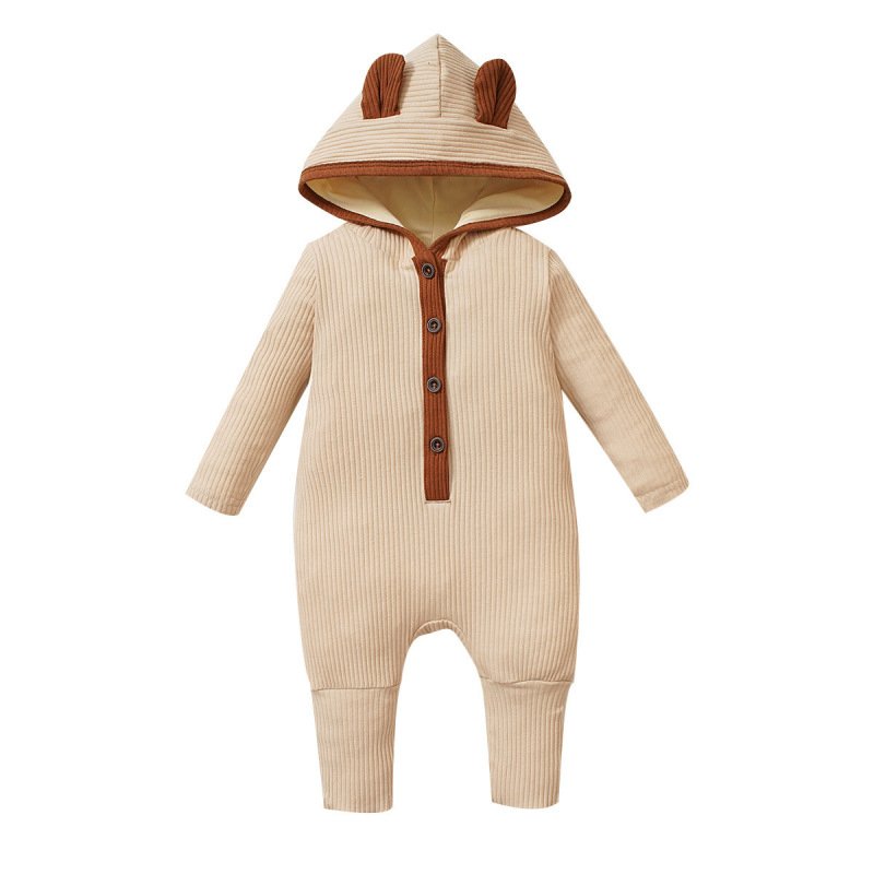 Kids Baby Unisex Spring Autumn Fashion Casual Solid Color Stripe Button Long Sleeve Hooded Romper