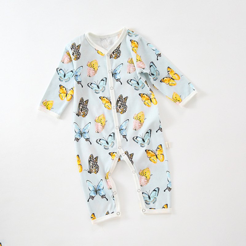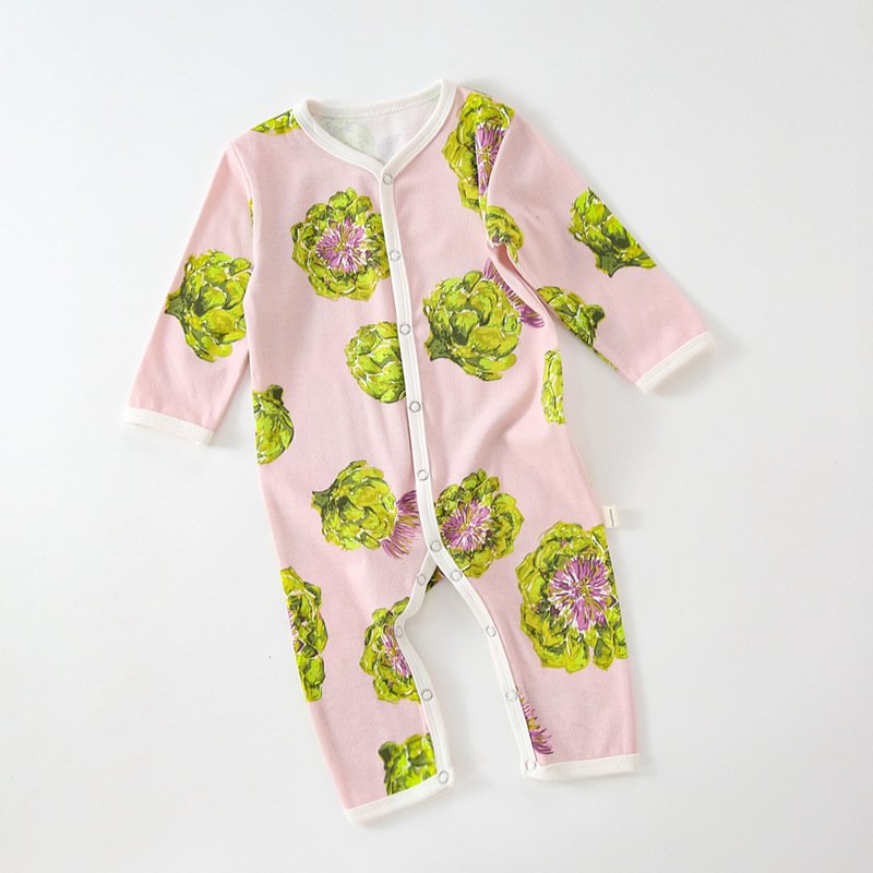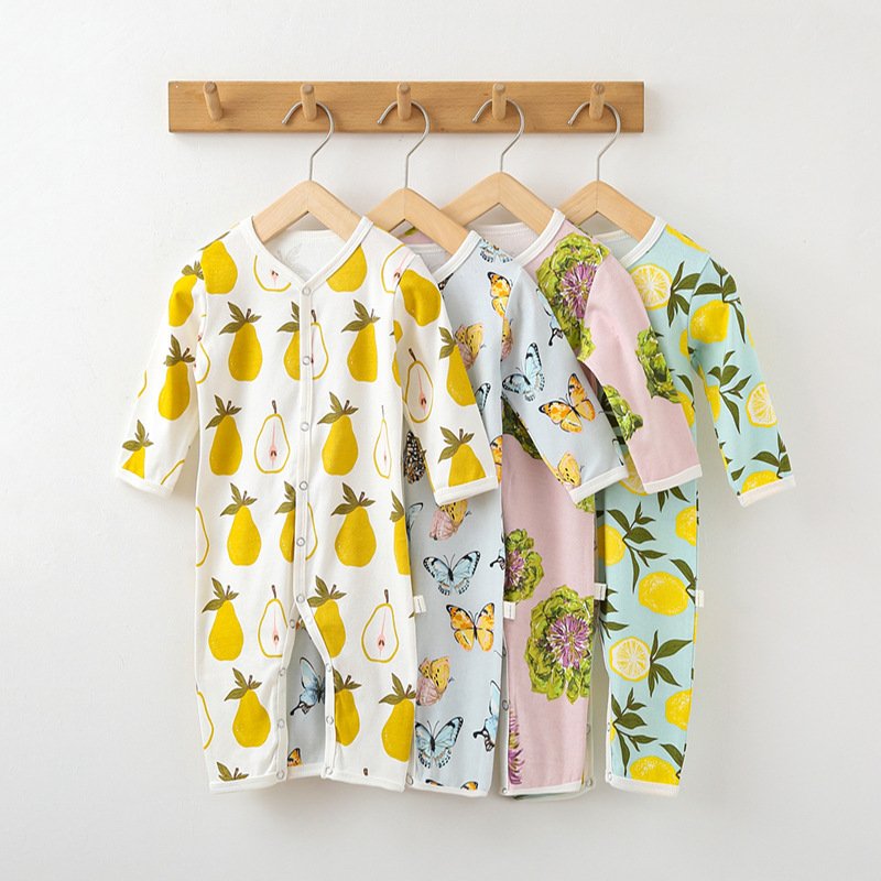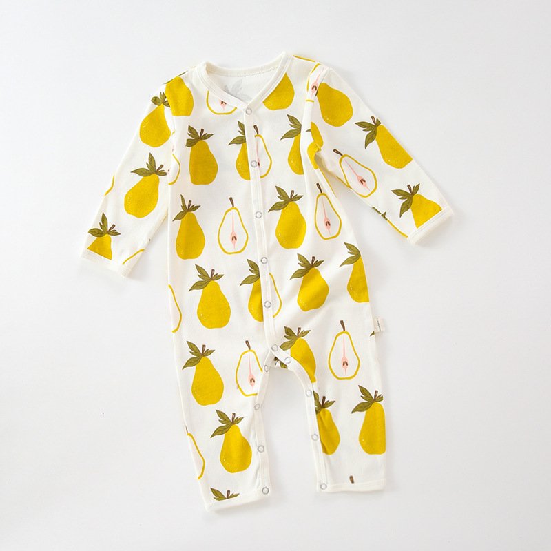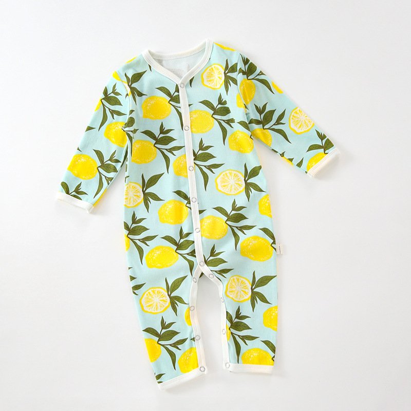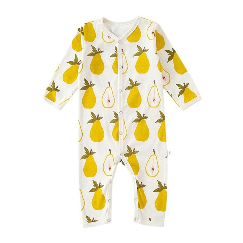 Kids Baby Unisex Spring Summer Casual Cute Pear Lemon Butterfly Pattern Cotton V Neck Jumpsuit Bodysuit