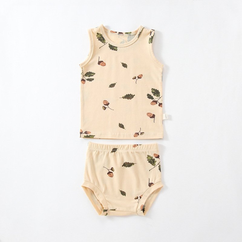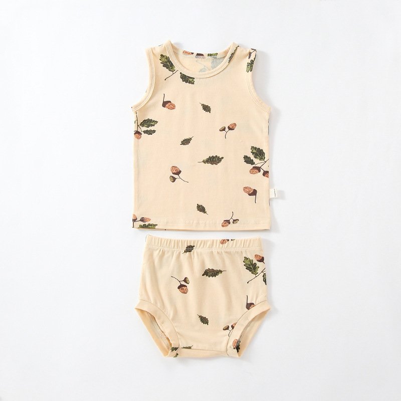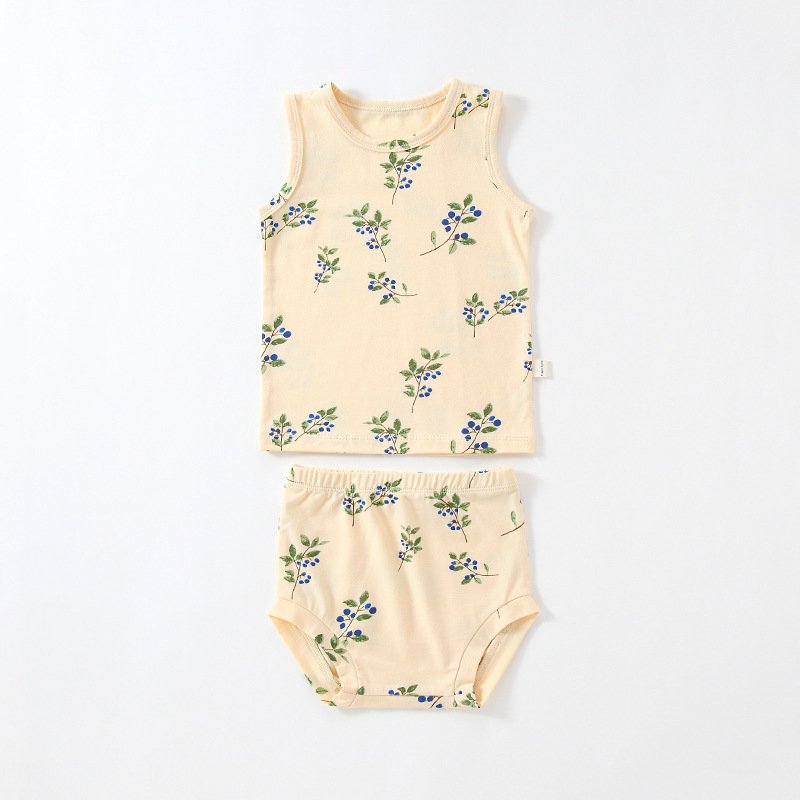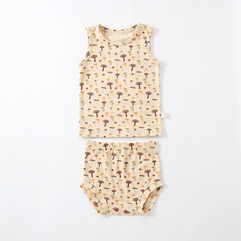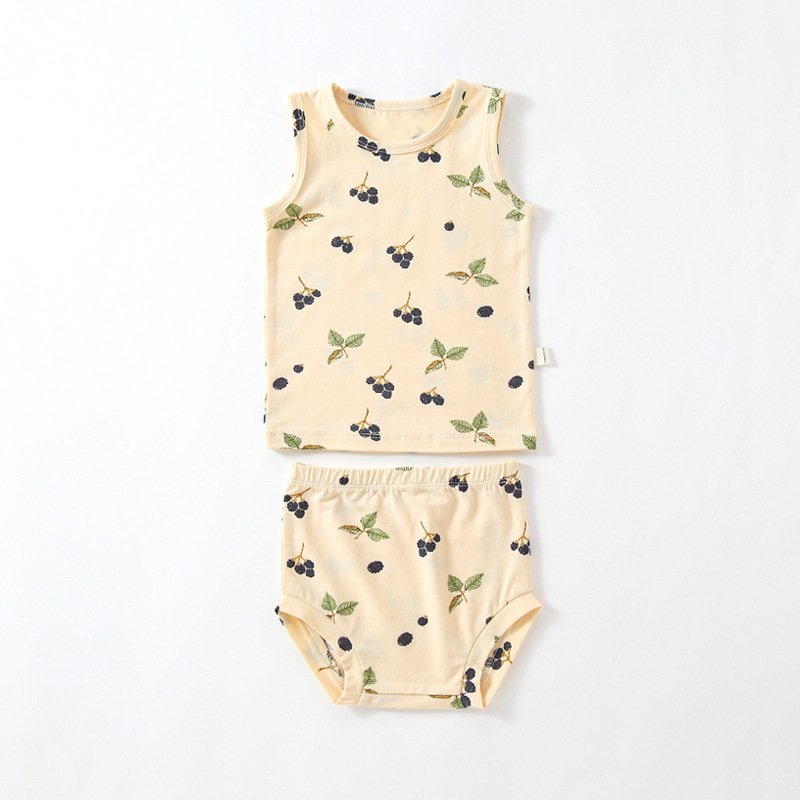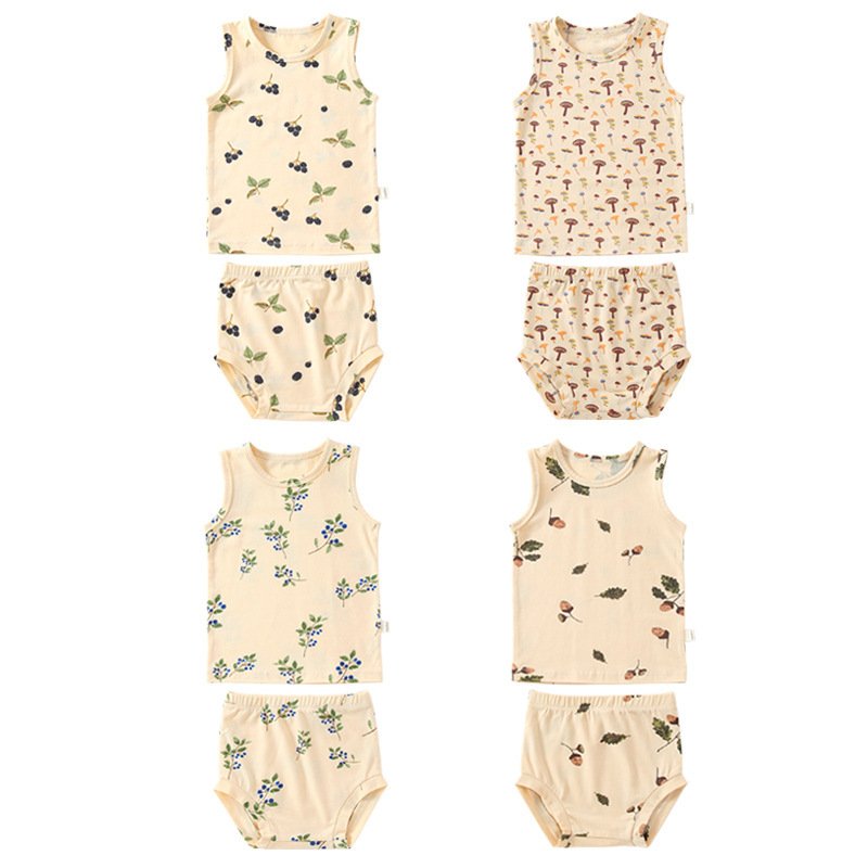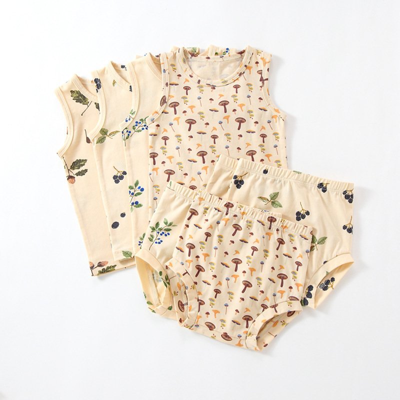 Kids Baby Unisex Summer Cute Casual Cotton Blackberry Mushroom Blueberry Pine Cone Pattern Round Neck Vest Shorts Set