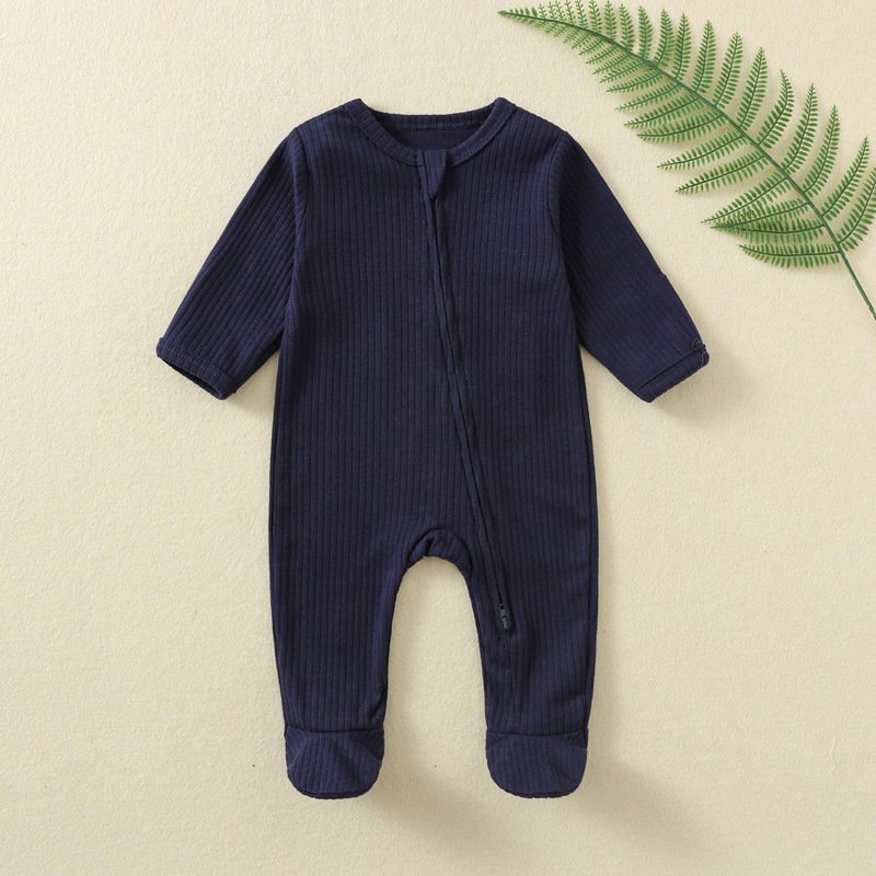 Kids Baby’s Boys And Girls Autumn And Winter Solid Color Long Sleeve Zipper Jumpsuits