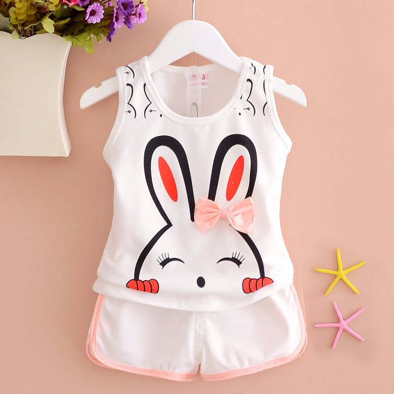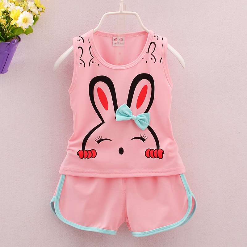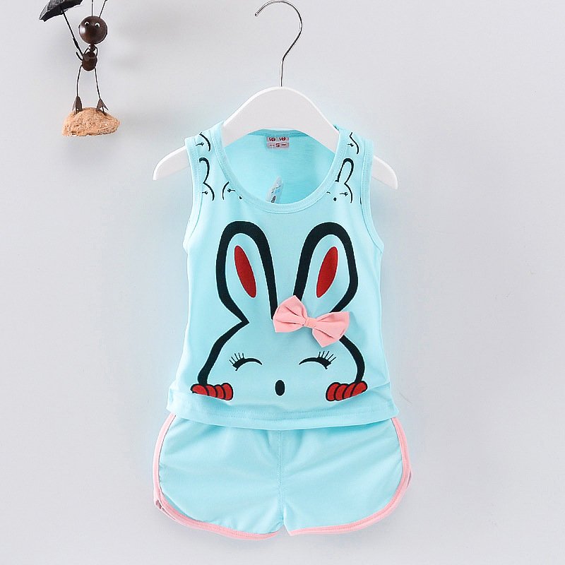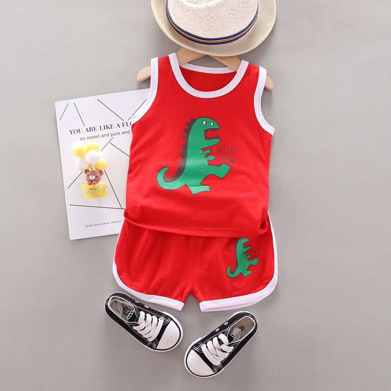 Kids Baisc Round Neck Vest Cartoon Pattern Vest And Shorts Set