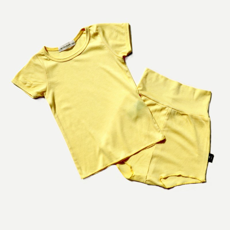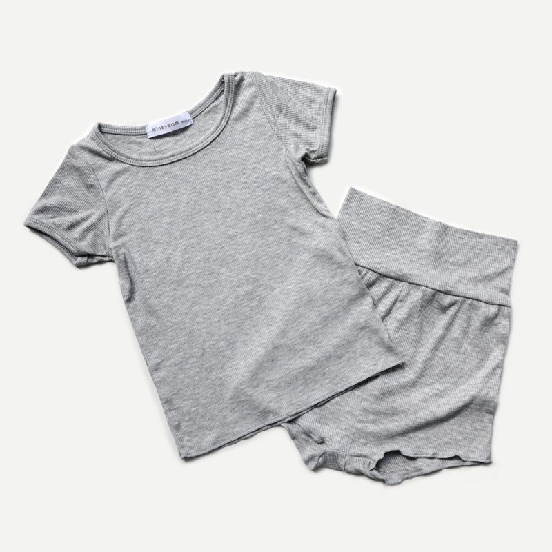 Kids Basic Casual Solid Color Round Neck Short Sleeve T-Shirt And Shorts Set