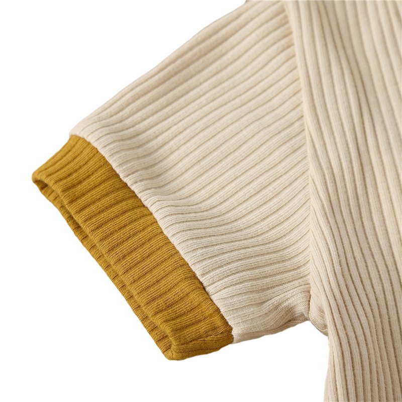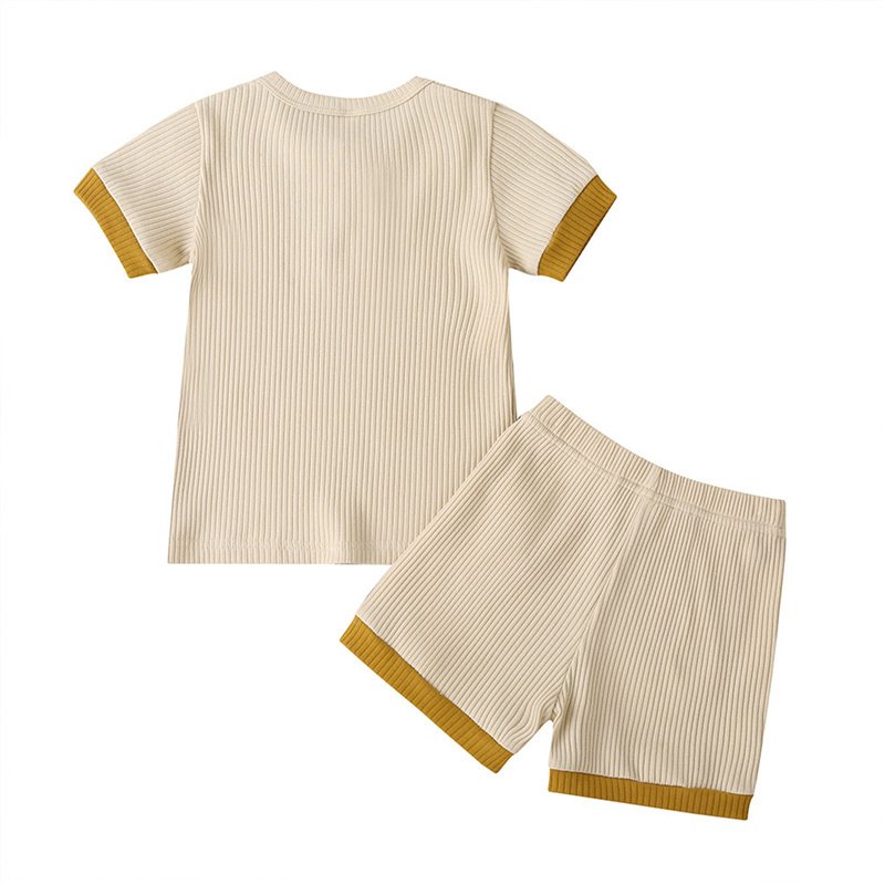 Kids Basic Color Blocking Ribbed Round Neck Short Sleeve T-Shirt And Elastic Shorts