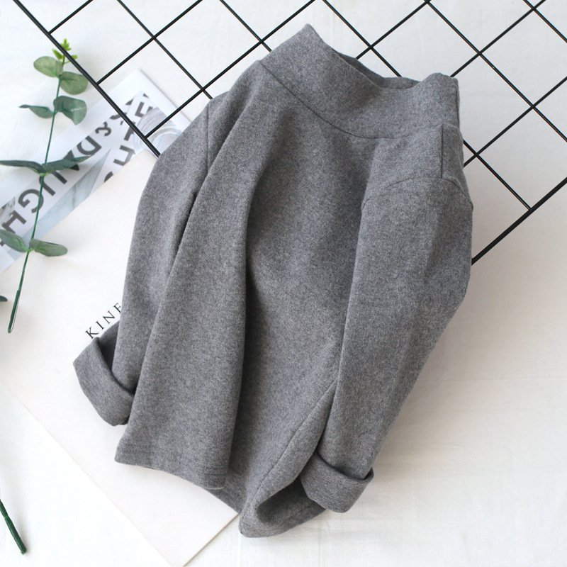 Kids Basic Half High Neck Long Sleeve Solid Color T-Shirt