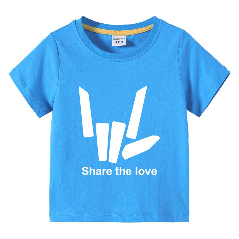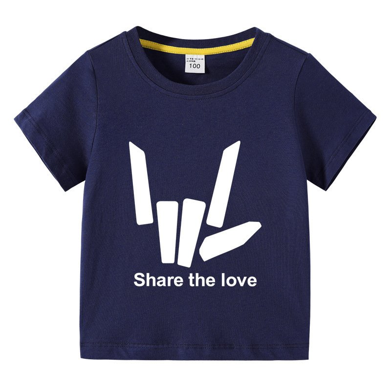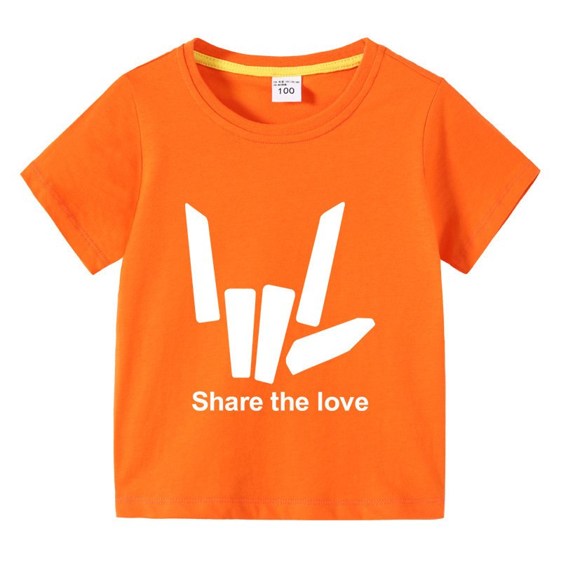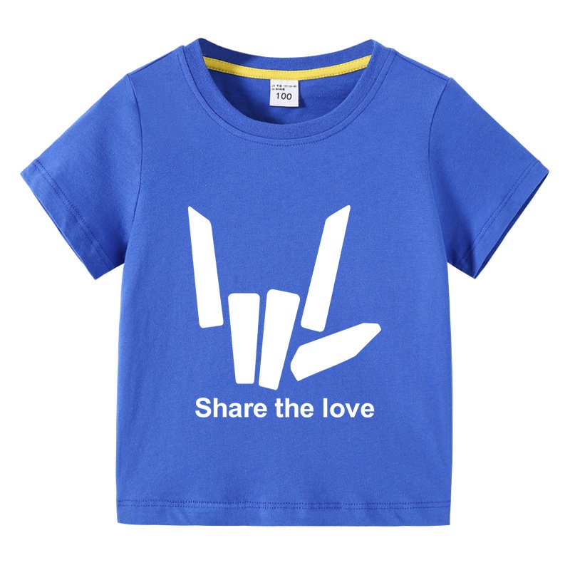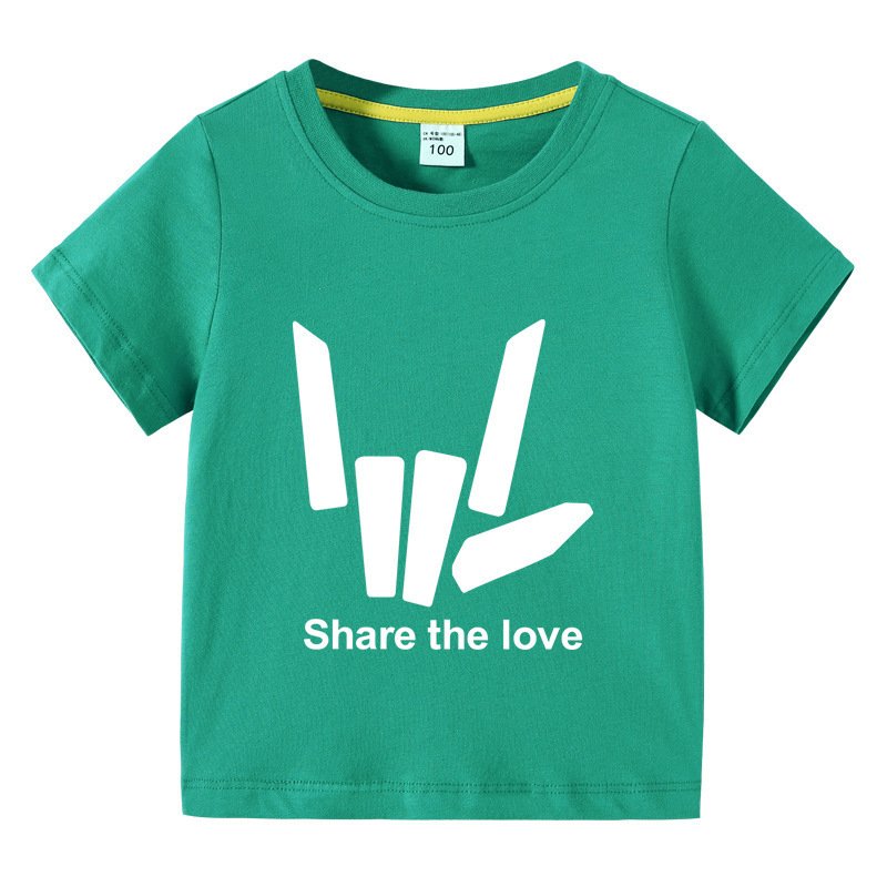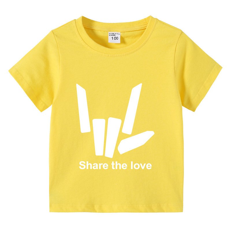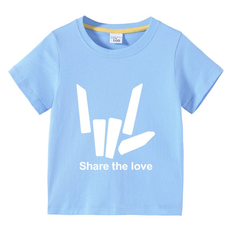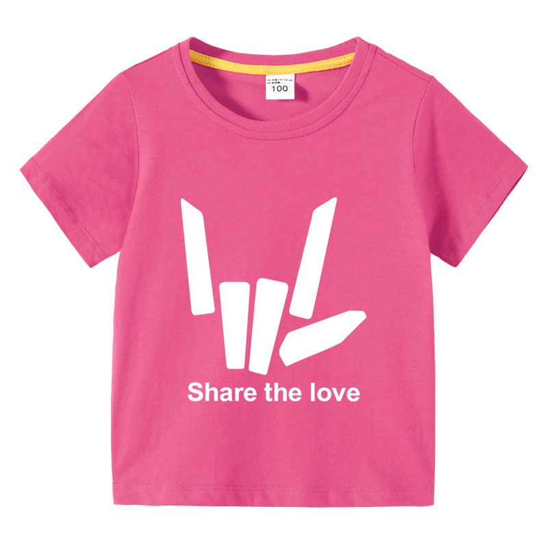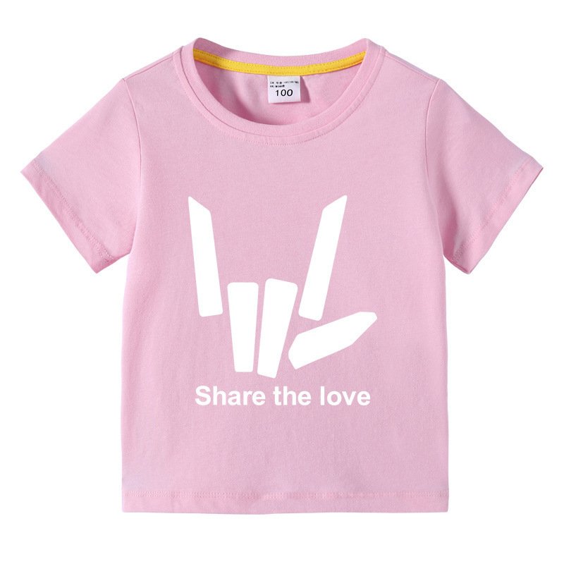 Kids Basic Love Gesture Letter Pattern Round Neck Short Sleeve T-Shirt