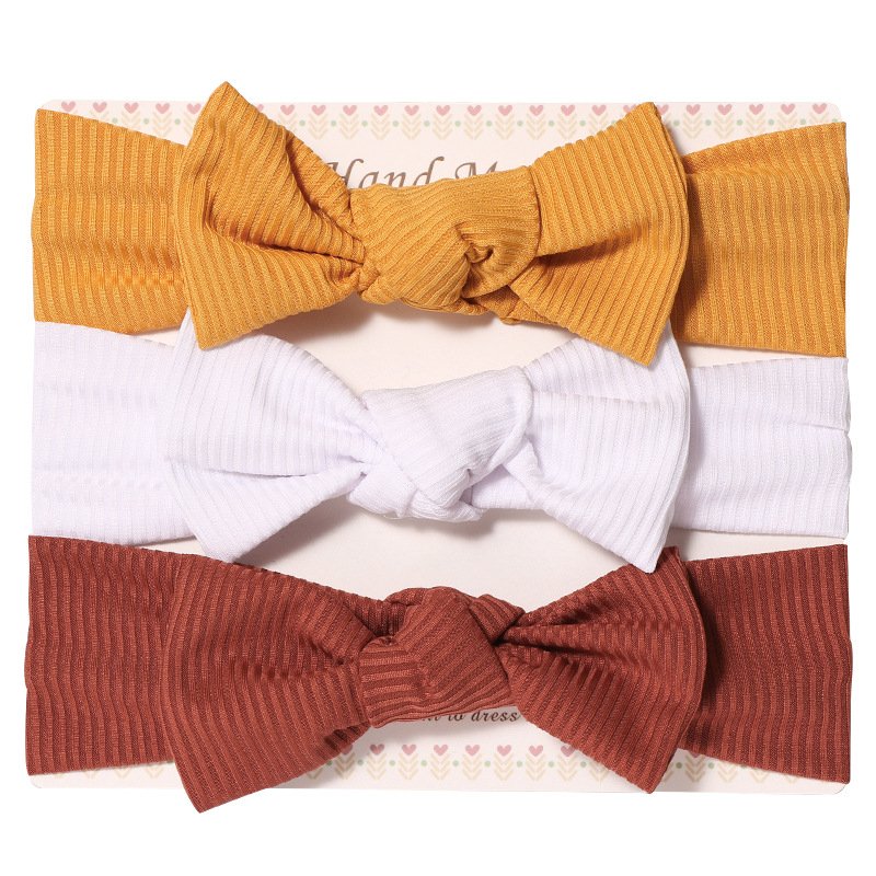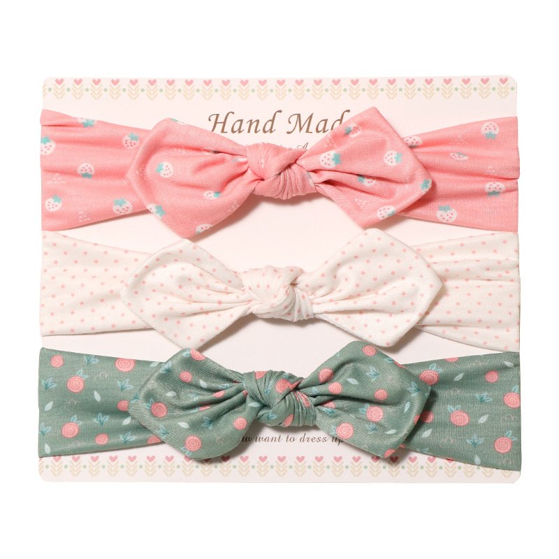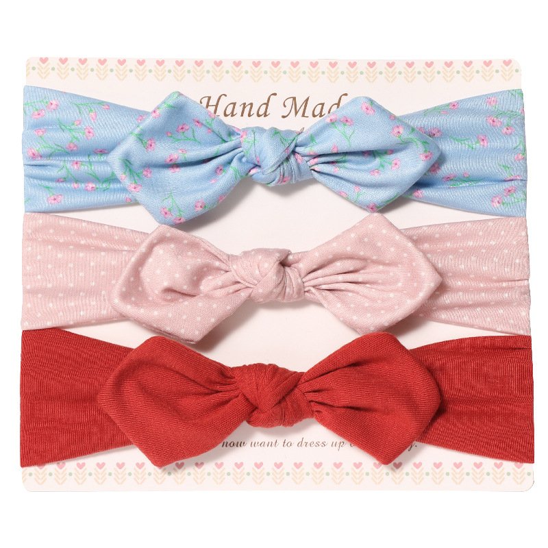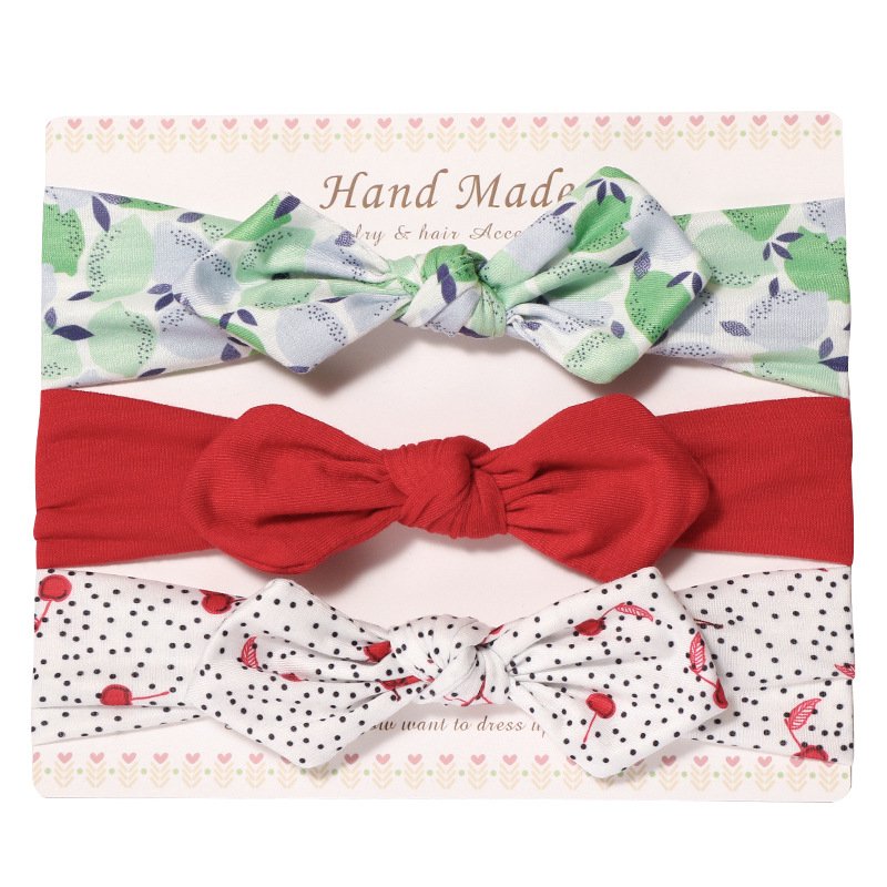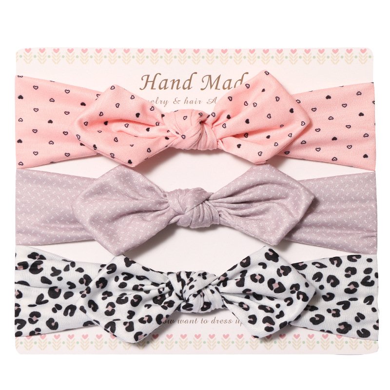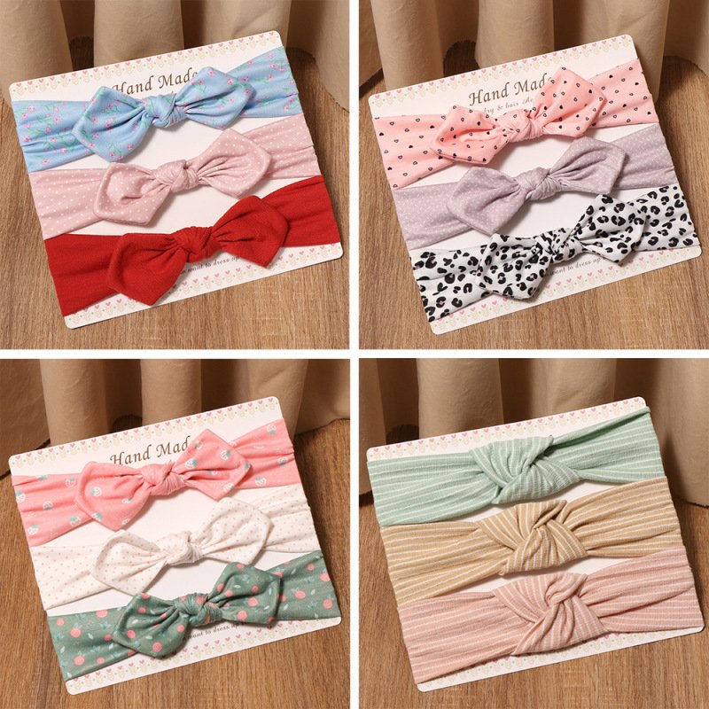 Kids Basic Printed Solid Color Bow Hair Accessory Headband Three-piece Set