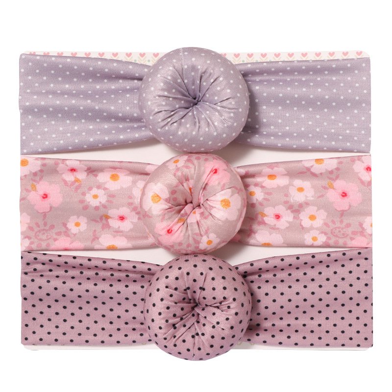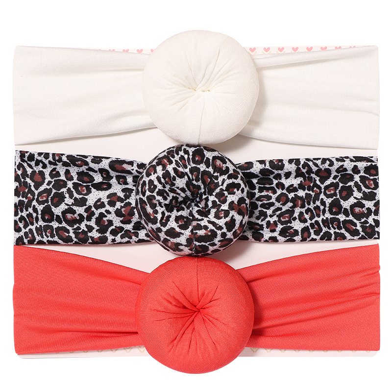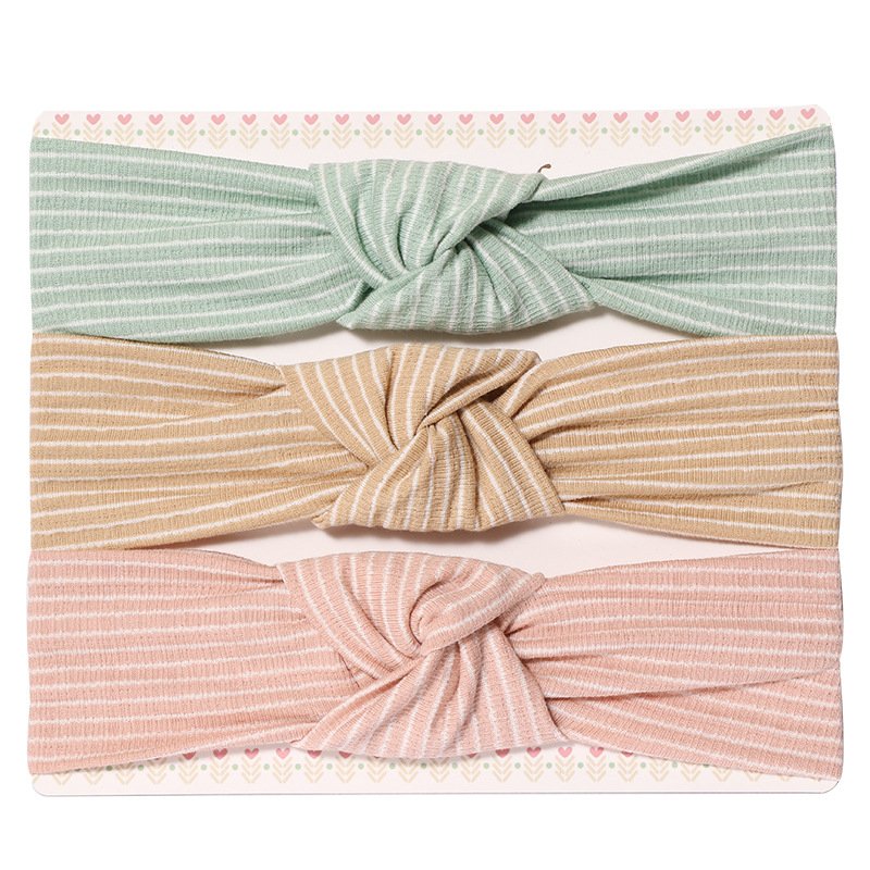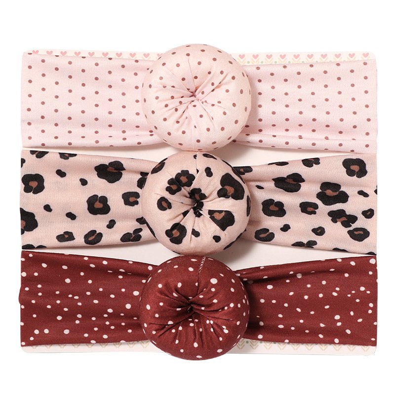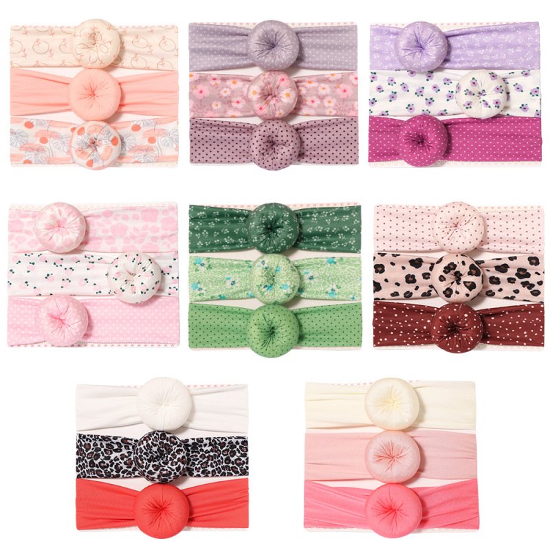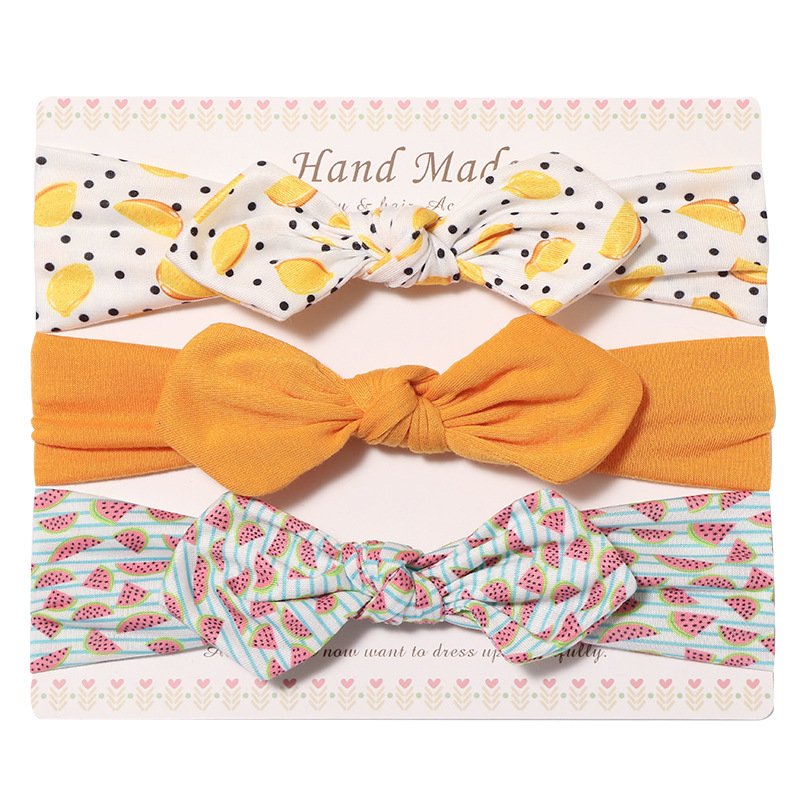 Kids Basic Printed Solid Color Bow Hair Accessory Headband Three-piece Set