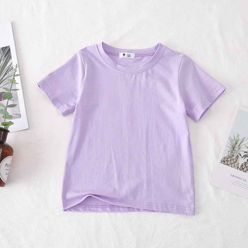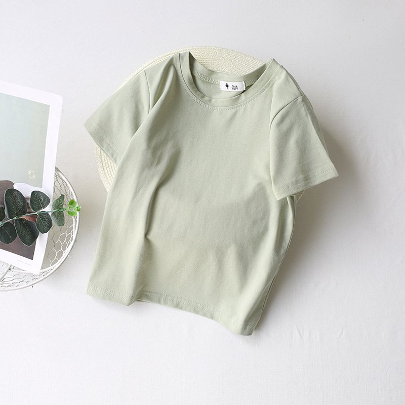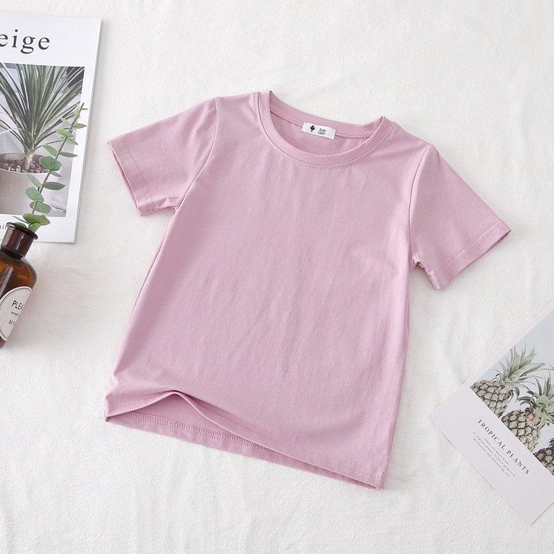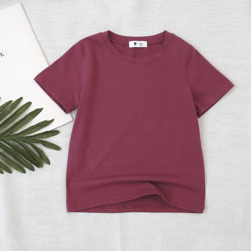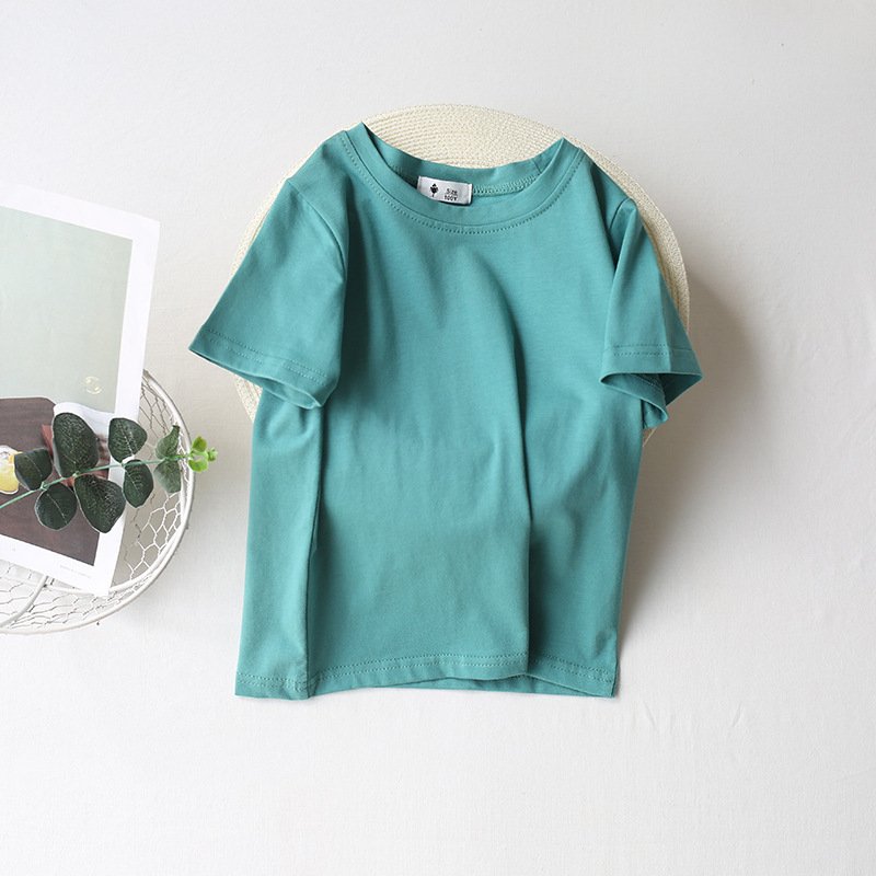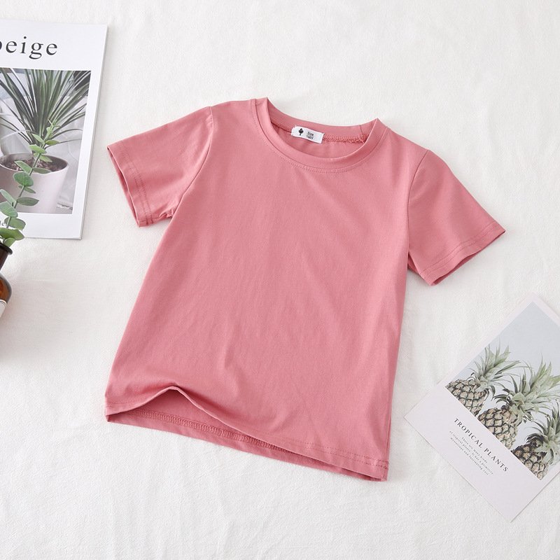 Kids Basic Solid Color Round Neck Short Sleeve Loose T-Shirt