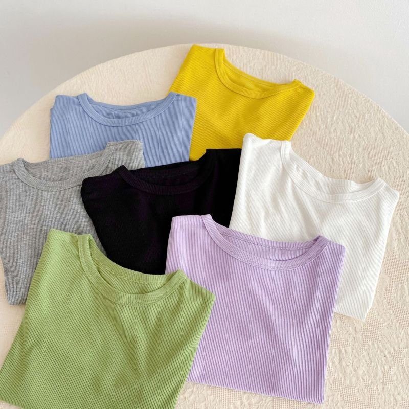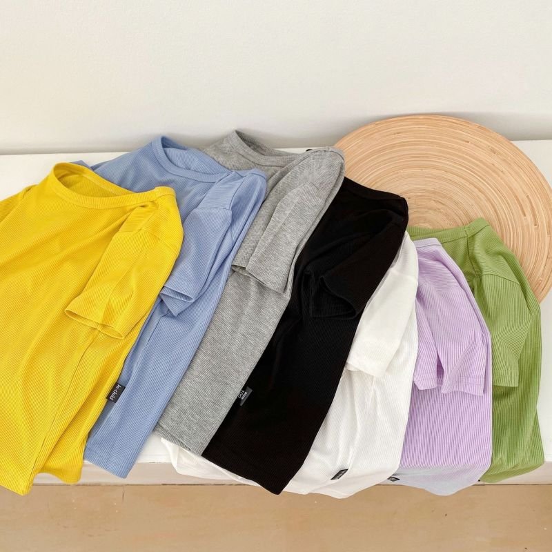 Kids Basic Solid Color Round Neck Short-sleeved Loose T-Shirt