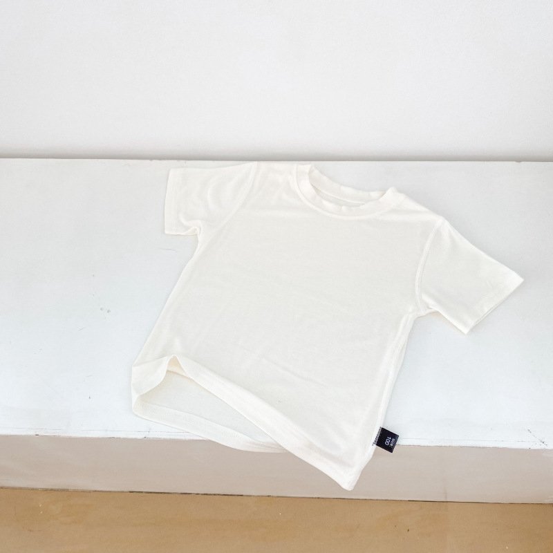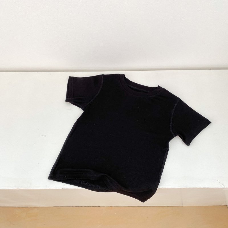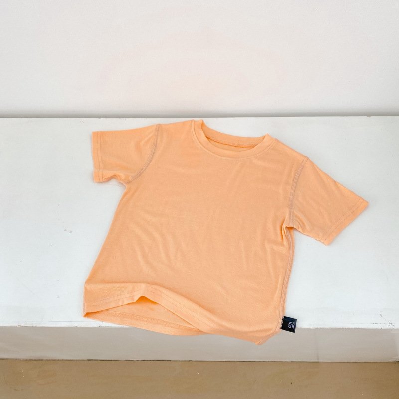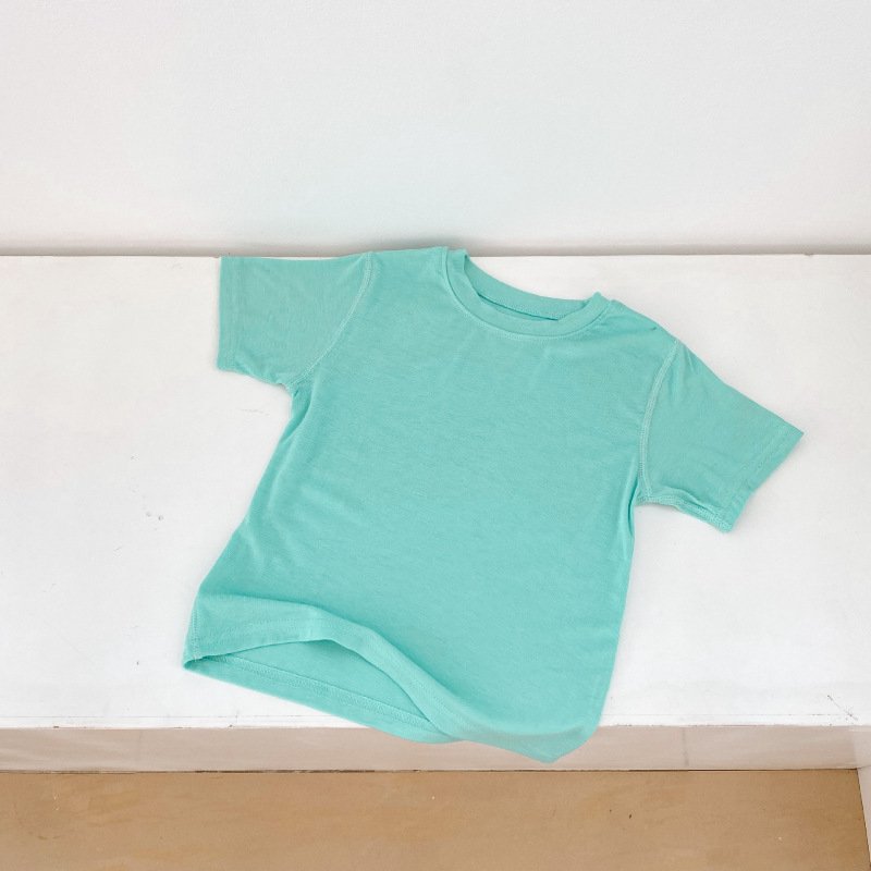 Kids Basic Solid Color Round Neck Short-sleeved Loose T-Shirt