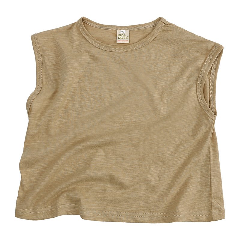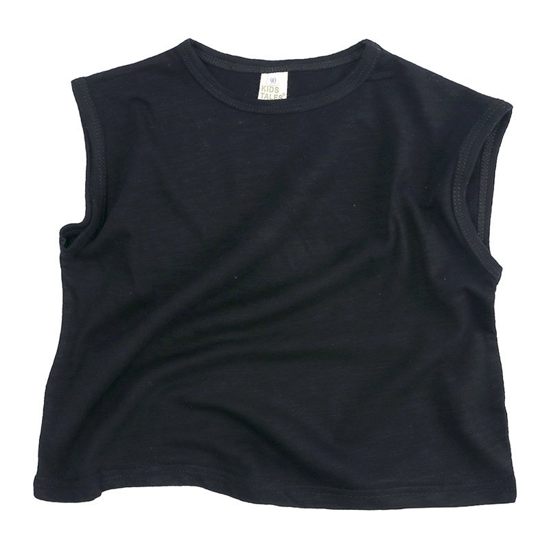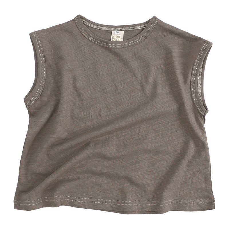 Kids Basic Solid Color Round Neck Sleeveless Loose T-Shirt