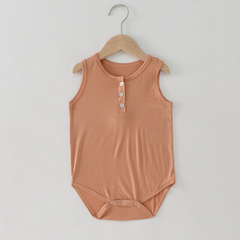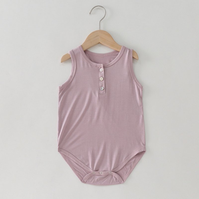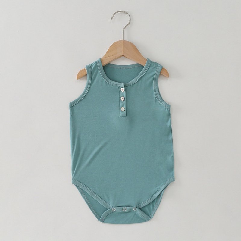 Kids Basic Solid Color Round Neck Sleeveless Romper