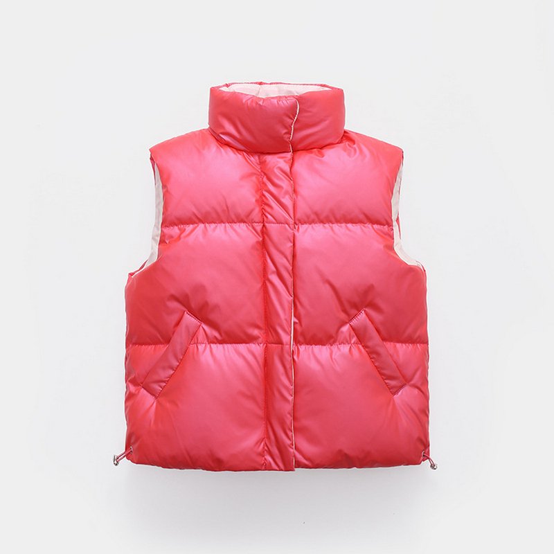 Kids Basic Solid Color Thickening Stand Neck Down Jacket Vest
