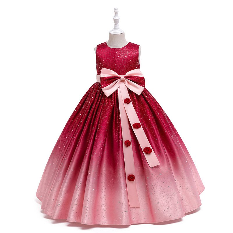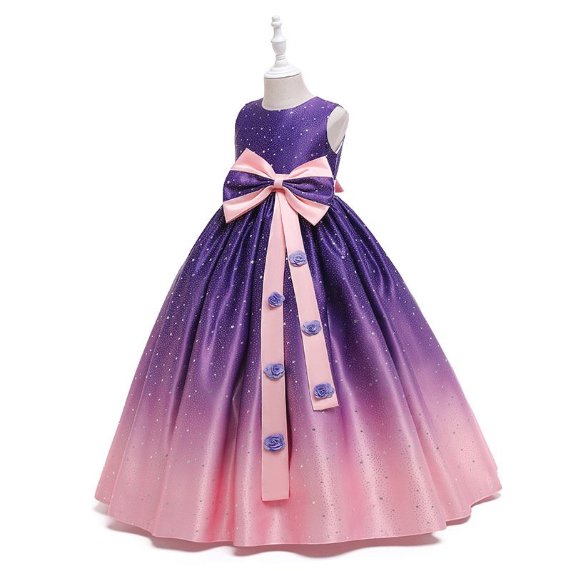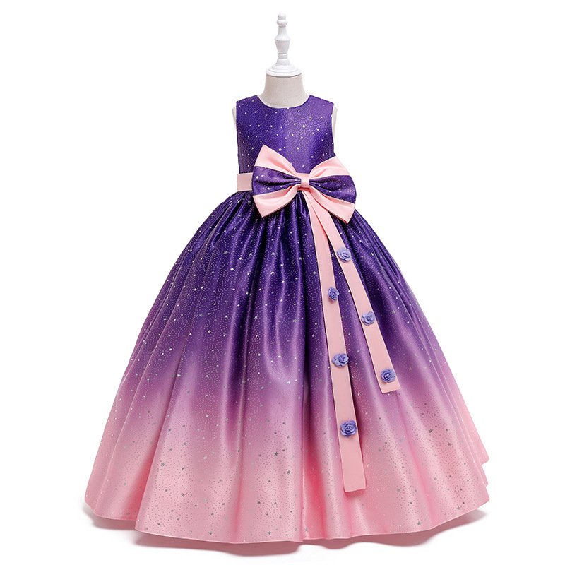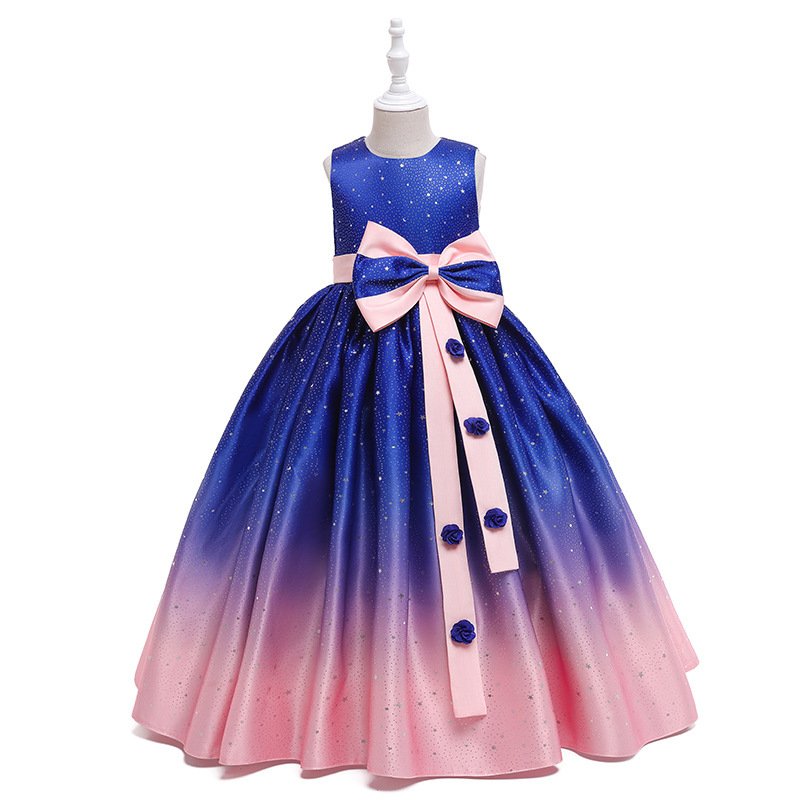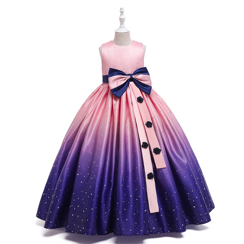 Kids Big Girls Summer Fashion Party Cute Sweet Color Matching Polka Dot Bow Pleated Sleeveless Party Tutu Dress