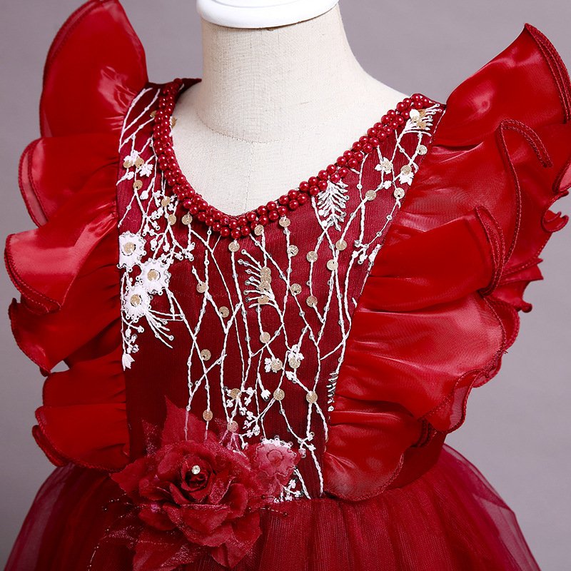 Kids Big Girls Summer Fashion Party Cute Sweet Solid Color Bow Pleated Sleeveless Mesh Party Tutu Dress