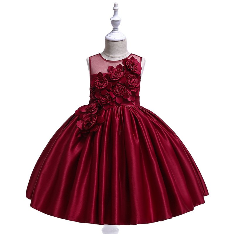 Kids Big Girls Summer Fashion Party Cute Sweet Solid Color Floral Pleated Sleeveless Party Tutu Dress