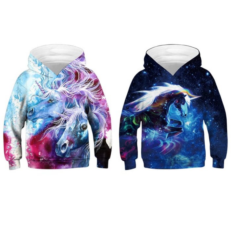 Kids Big Pattern Printed Hooded Sweatshirt