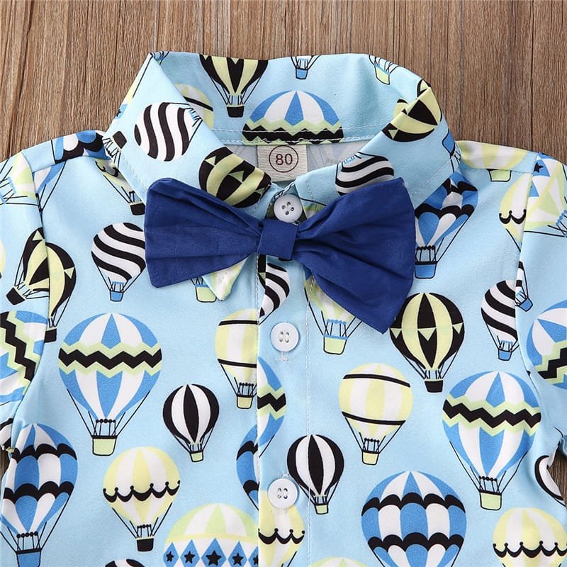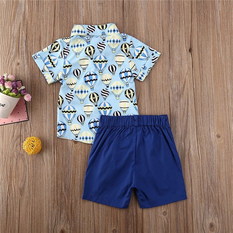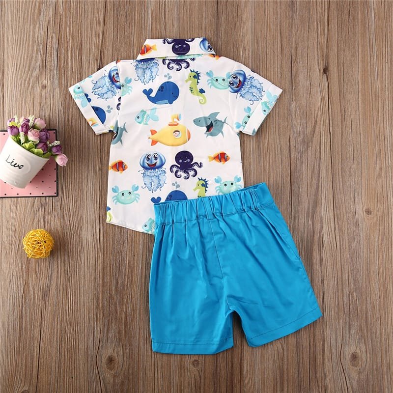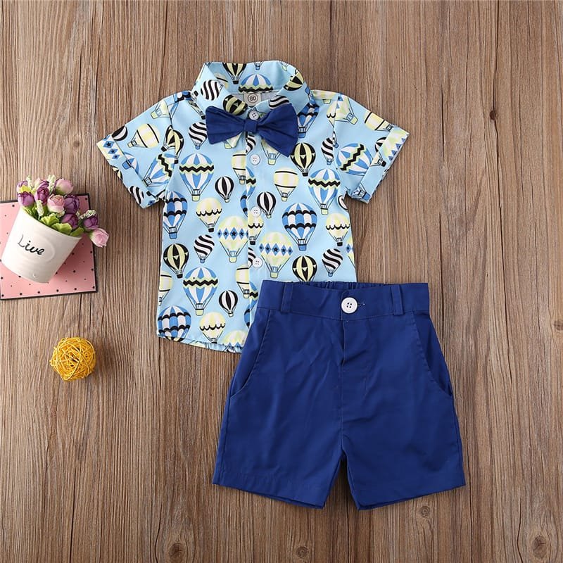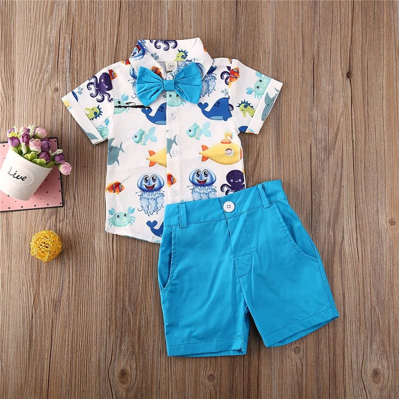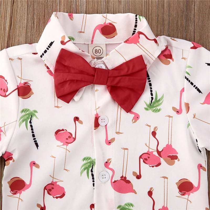 Kids Bow Tie Decorated Flamingo Pattern Short-sleeved Shirt And Shorts Set