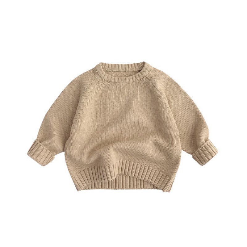 Kids Boys And Girls Autumn And Winter Solid Color Round-Neck Long-Sleeve Sweater