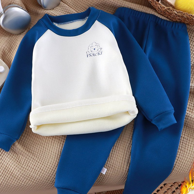 Kids Boys And Girls Fashion Autumn And Winter Color Block Velvet Thickened Long-Sleeve Top Loose Pants Two-Piece Set