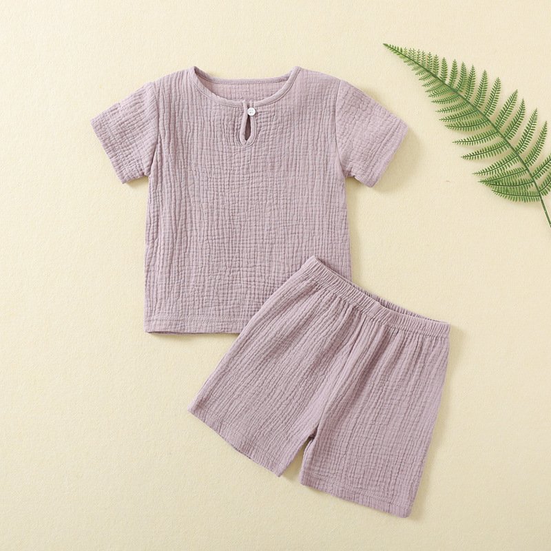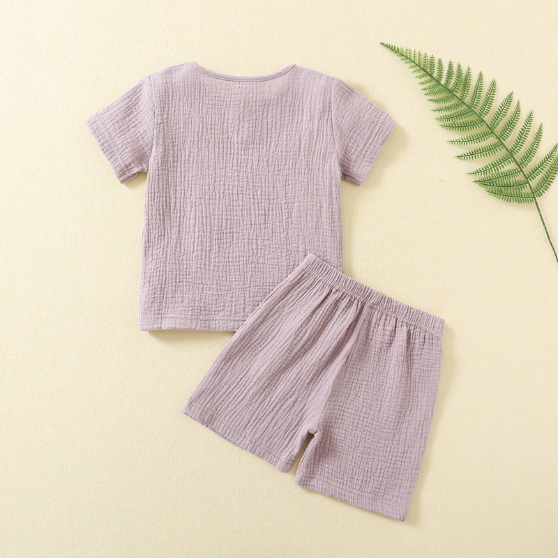 Kids Boys And Girls Fashion Causal Solid Color Thin Short-Sleeve T-Shirt Loose Shorts Two-Piece Set
