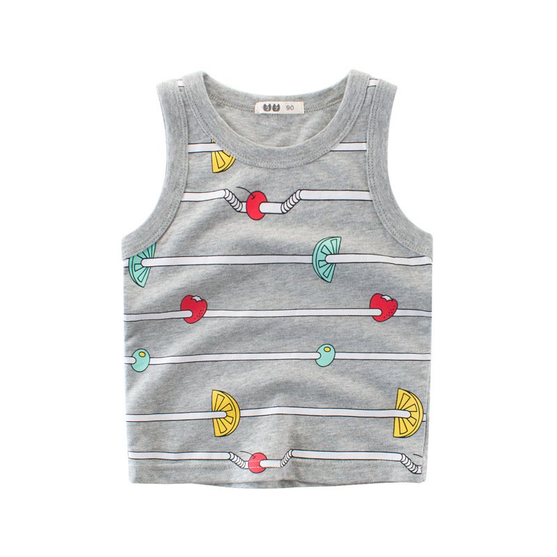 Kids Boys Basic Cartoon Fruit All Over Print Round Neck Sleeveless Casual Vest