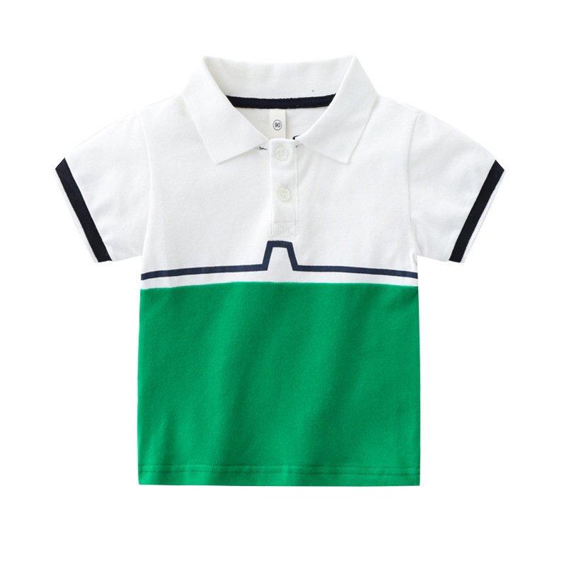 Kids Boys Basic Color Blocking Lapel Short Sleeve T-Shirt
