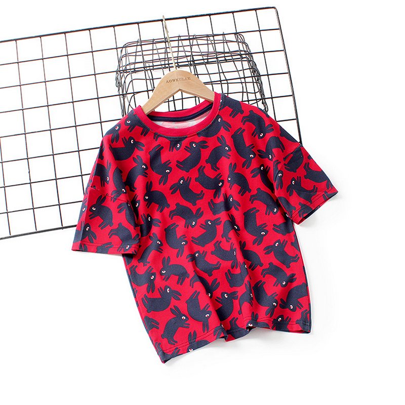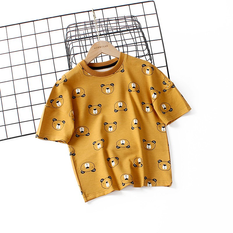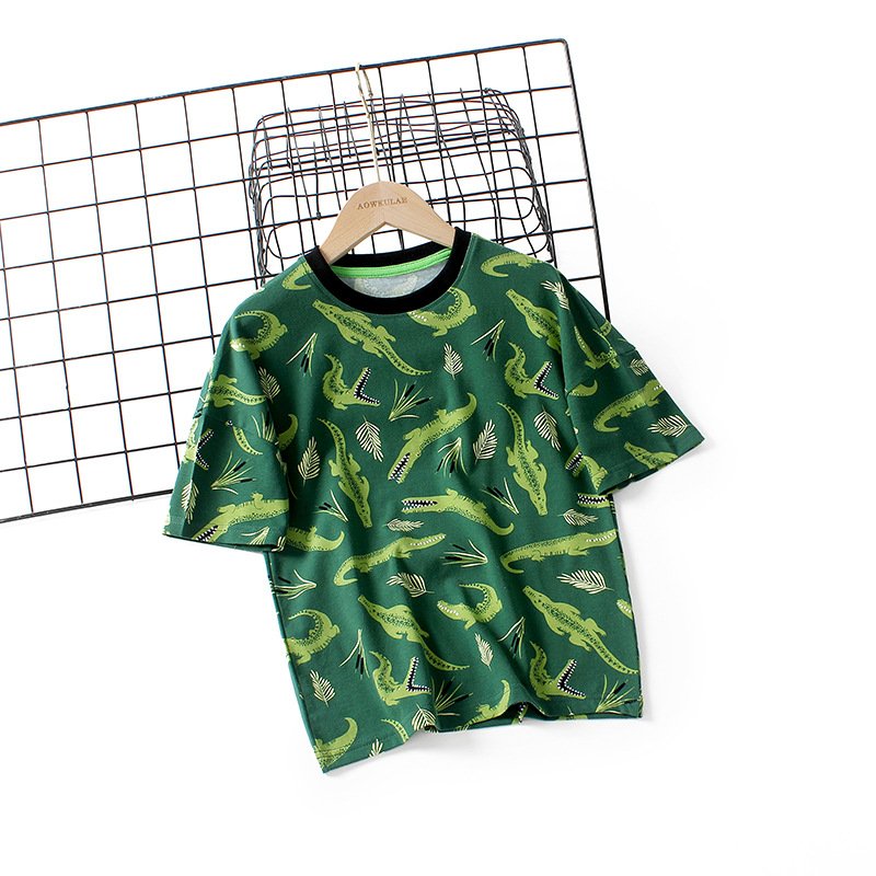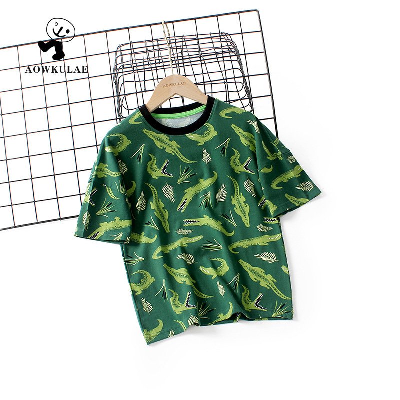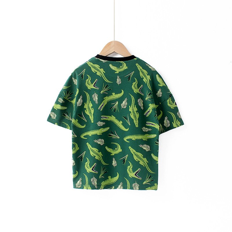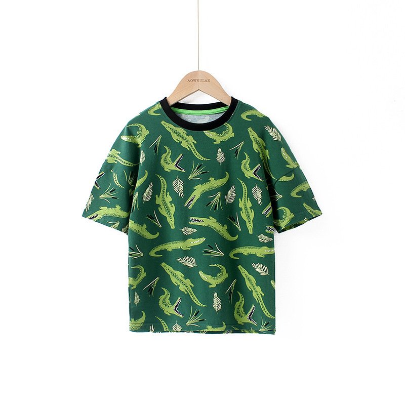 Kids Boys Casual Cartoon Animal All Over Print Round Neck Short-sleeved Loose T-Shirt