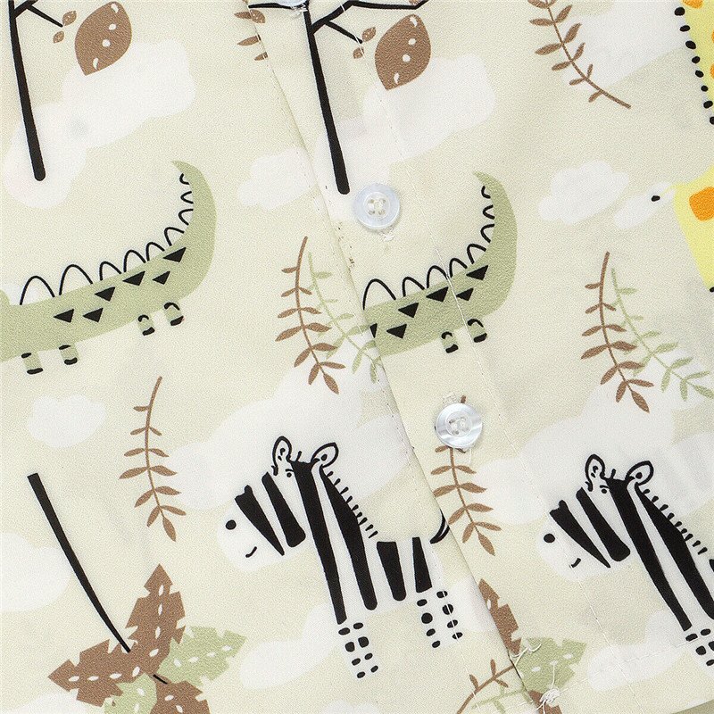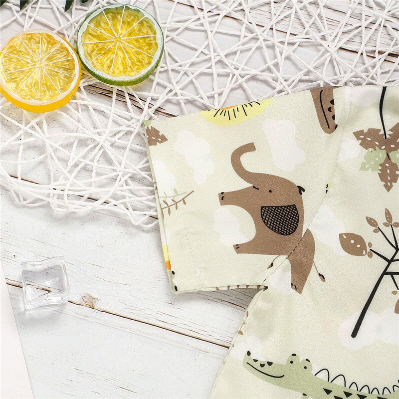 Kids Boys Casual Cartoon Animal Print Lapel Short Sleeve Shirt And Elastic Shorts Set