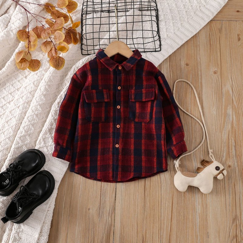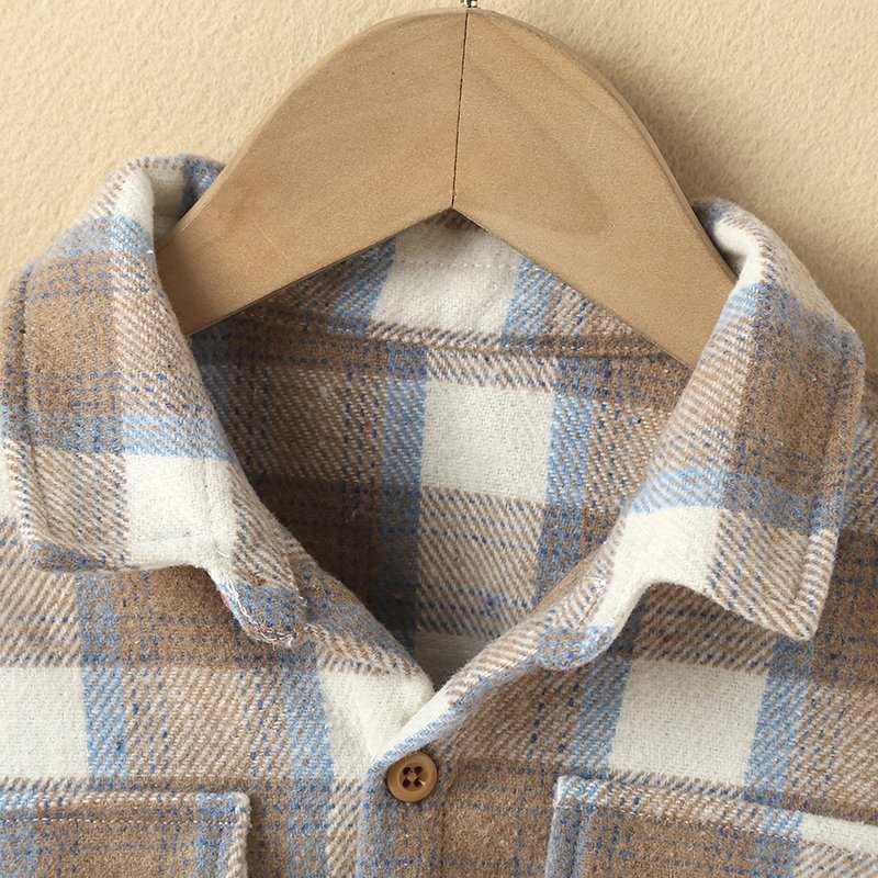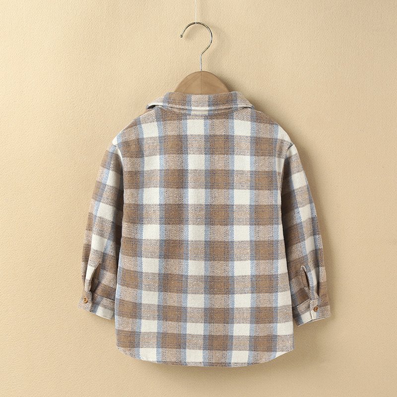 Kids Boys Casual Lapel Long Sleeve Plaid Single-breasted Shirt