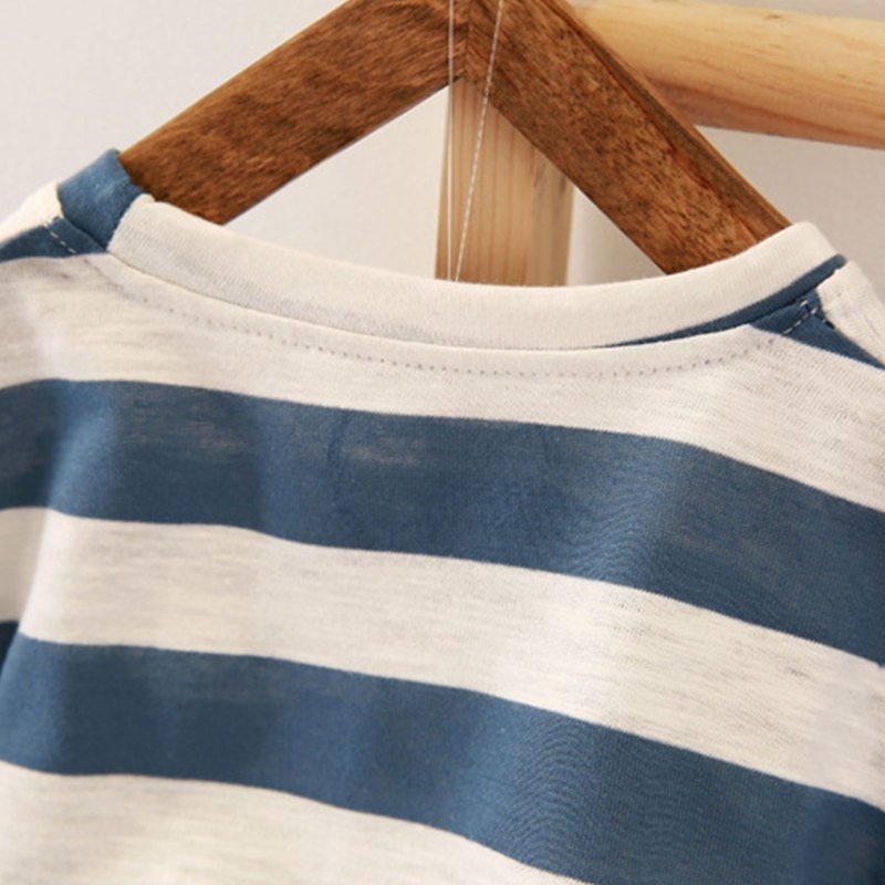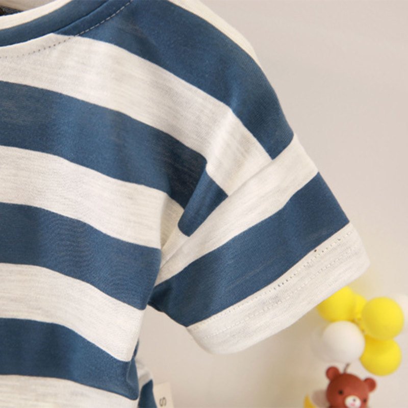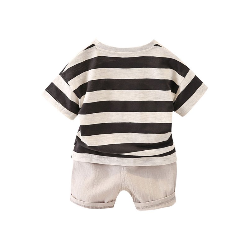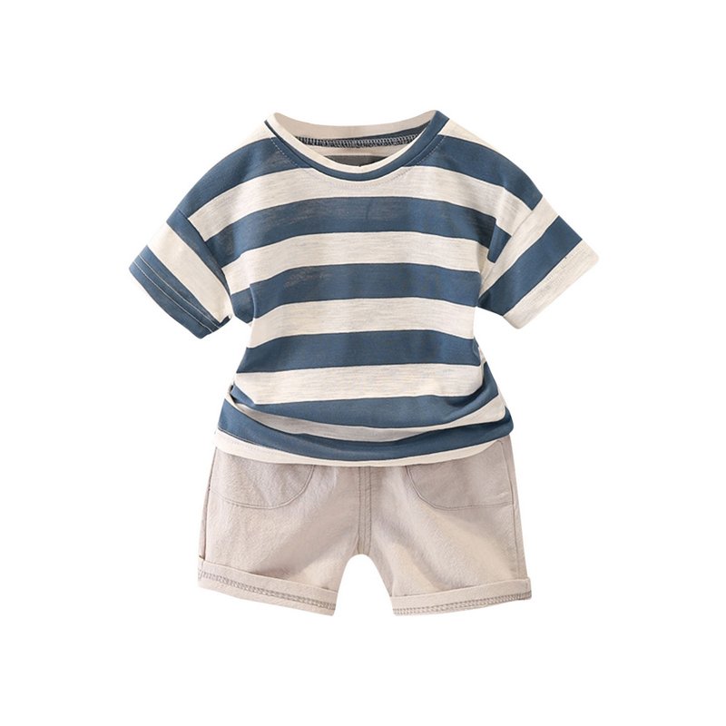 Kids Boys Casual Round Neck Short Sleeves Wide Stripe T-Shirt And Shorts Set