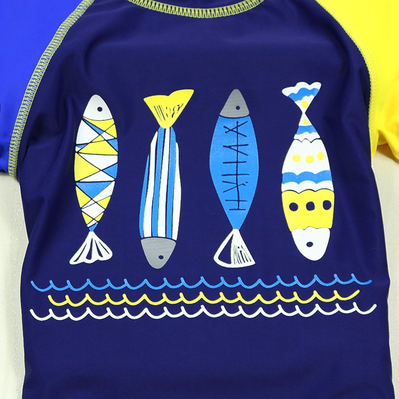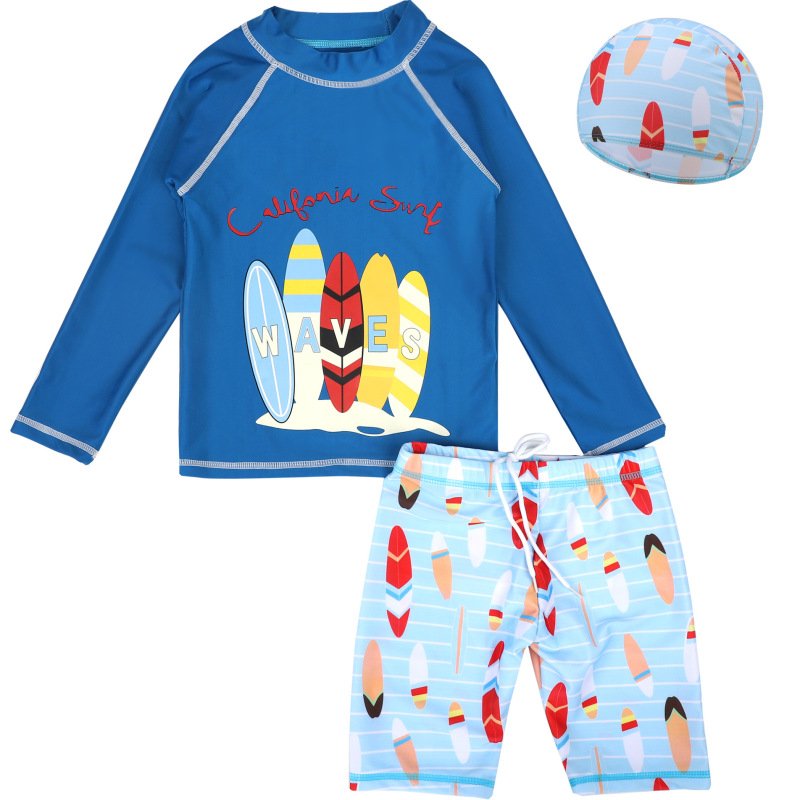 Kids Boys Cool Cartoon Long Sleeve Beachwear Elastic Swimwear With Cap Three Pieces Set