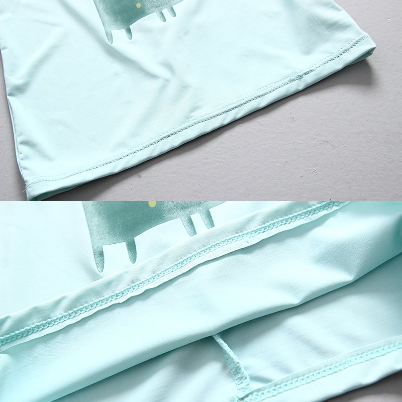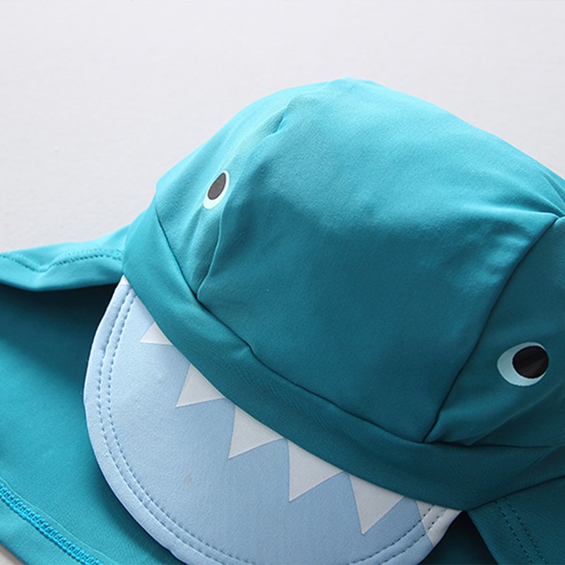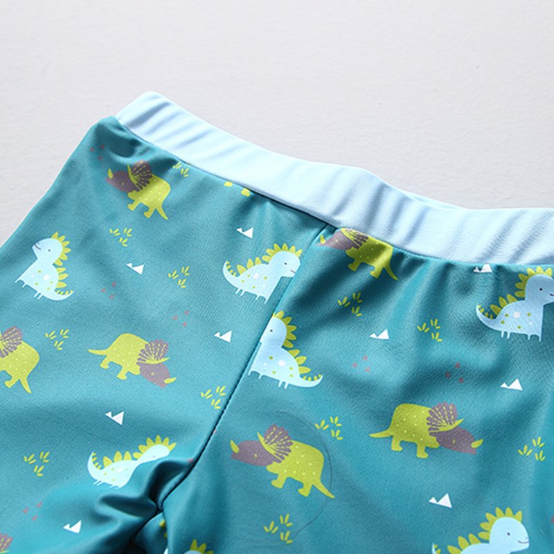 Kids Boys Cute Cartoon Dinosaur Round Neck Short Sleeve Top And Elastic Bottom With Cap Swimwear Set