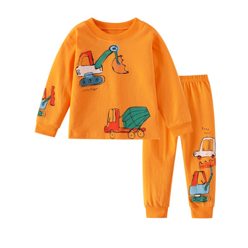 Kids Boys Fashion Cartoon Printed Long Sleeve Top Slim Fit Pants Two-Piece Set